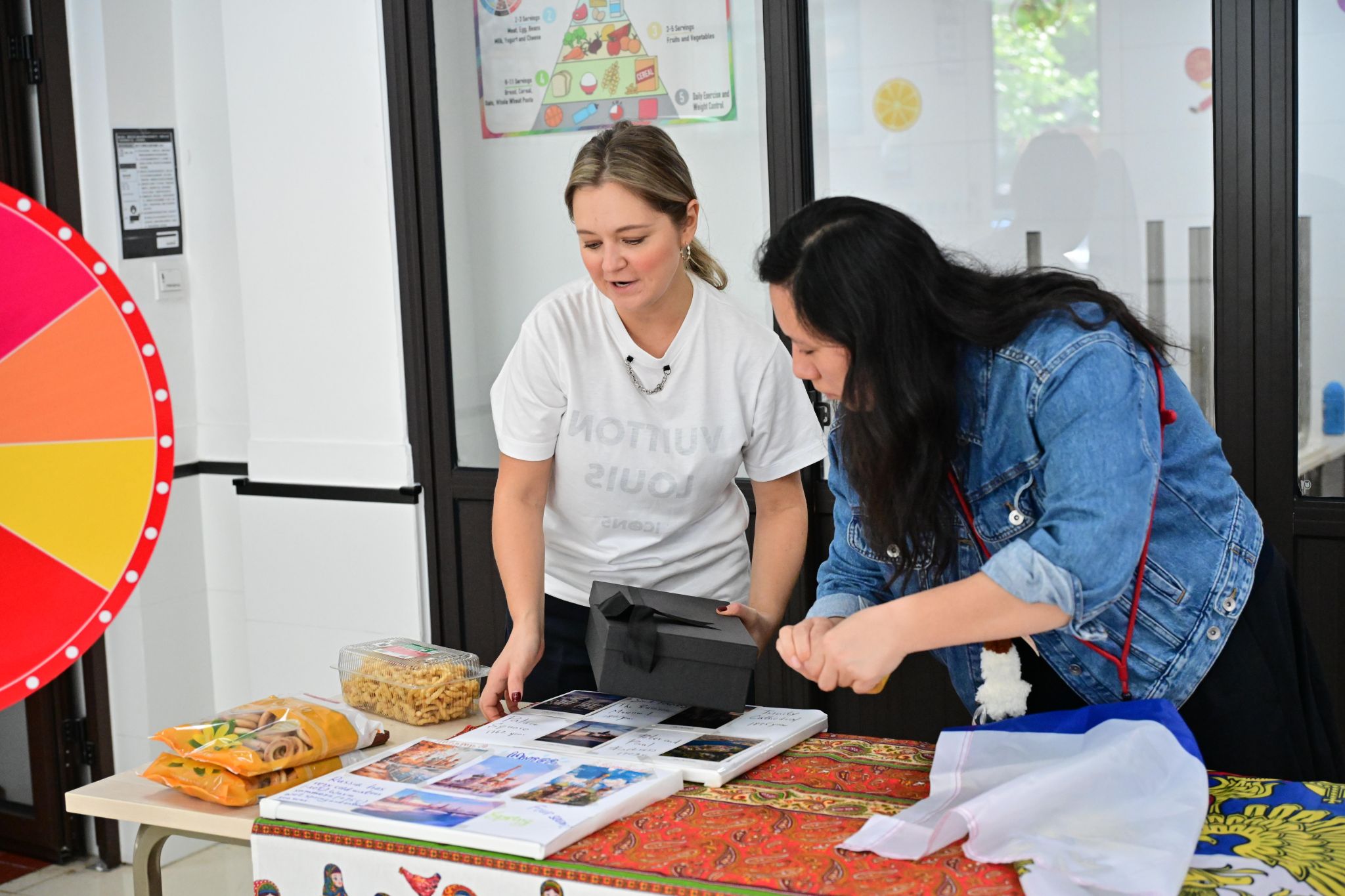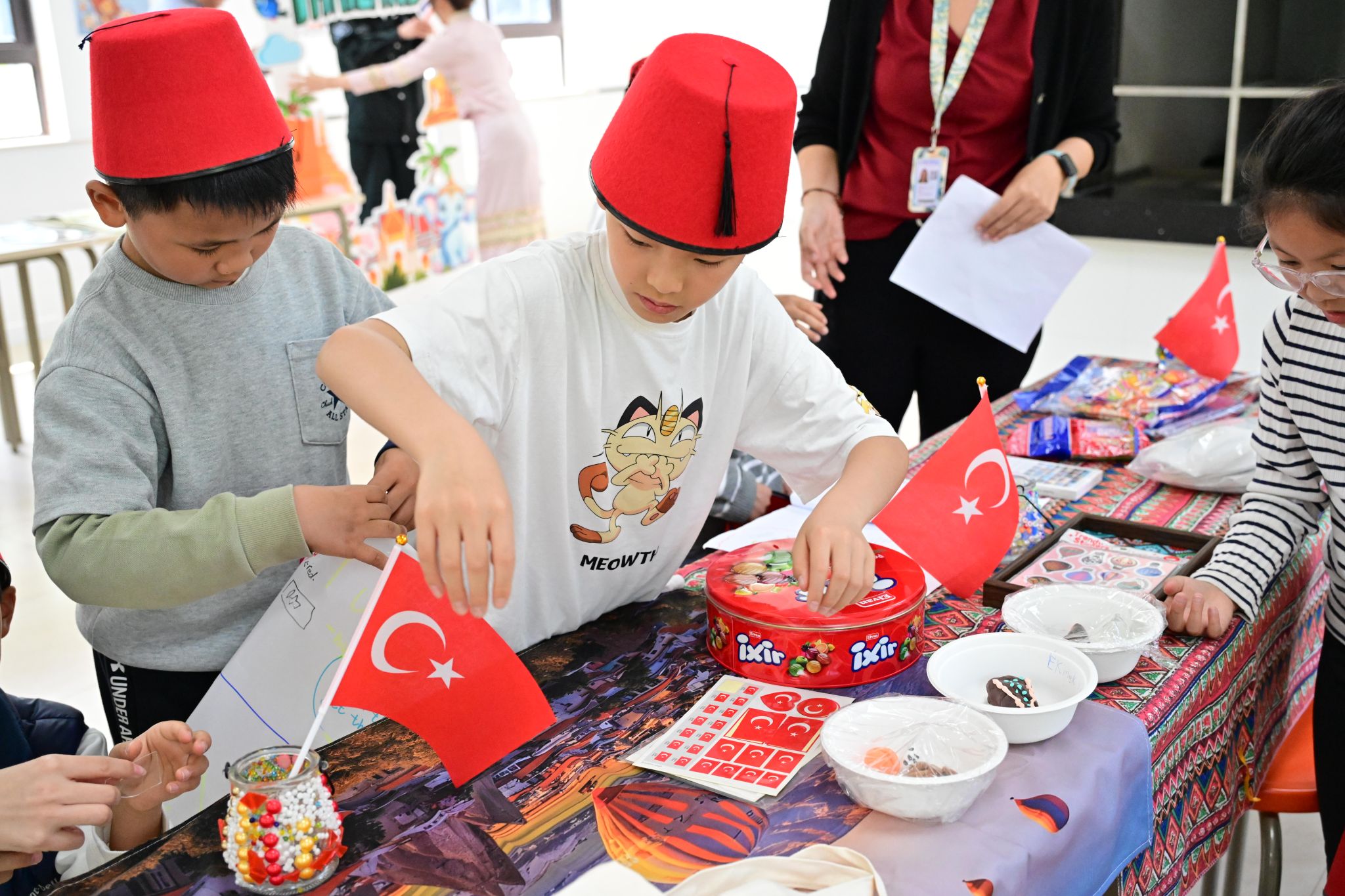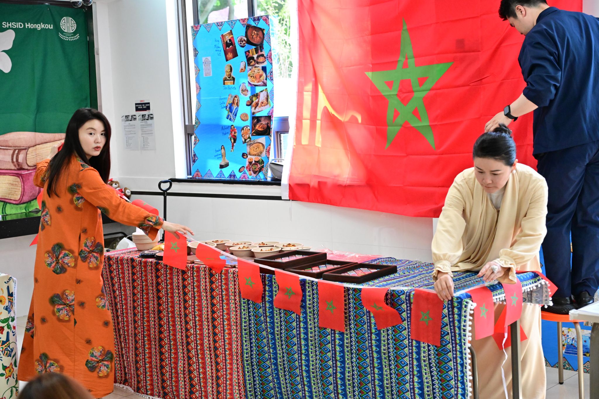 Each country inspired and amazed in different ways, sparking curiosity and inviting students to experience cultures through all their senses: Thailand, which catered to those exploring Southeast Asian cuisine with a delicious array of traditional foods and refreshing milk tea. Scotland put on a visual feast of green and tartan, beautifully showcasing the nation's rich traditions and cultural identity. France brought its cultural heritage to life through famous artworks, models of iconic museums, and elegant displays. Cameroon drew students into the rhythms of Africa with vibrant drum beats, traditional foods, and striking sculptures. India was a delight for all the senses, featuring traditional music, colorful costumes, aromatic incense, and a wide variety of foods. Turkey gave us a rich cultural fusion, highlighted by intricate textiles and the inviting aromas of Mediterranean spices. Australia became a crowd favorite, with a range of iconic animals and themed items for students to explore and take away. Peru offered a taste of the rainforest with a selection of fruity and plant-based snacks inspired by its natural landscape. Iceland let students have a glimpse of the Northern Lights through an immersive Aurora-themed tent experience. Russia showcased its history through traditional toys and cultural artifacts. Sweden introduced students to Viking heritage, complemented by the ever-popular Swedish meatballs. Morocco captivated visitors with its intricate patterns and rich, flavorful cuisine.