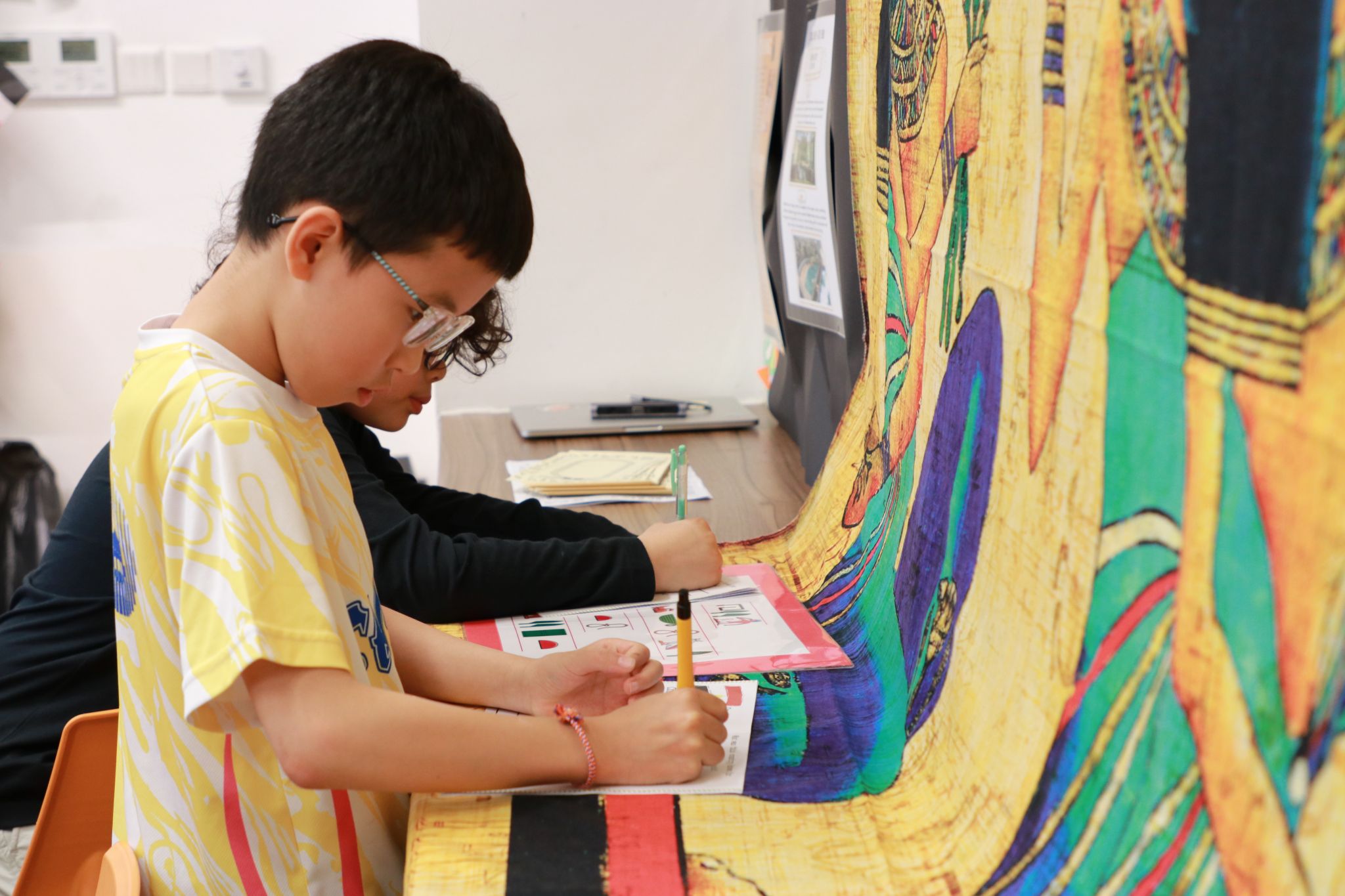 In Egypt, students explored ancient communication by deciphering and writing hieroglyphs and constructing their own pyramids. They also had the opportunity to sample a variety of traditional foods, including hummus and Egyptian kofta, along with refreshing mint tea.
