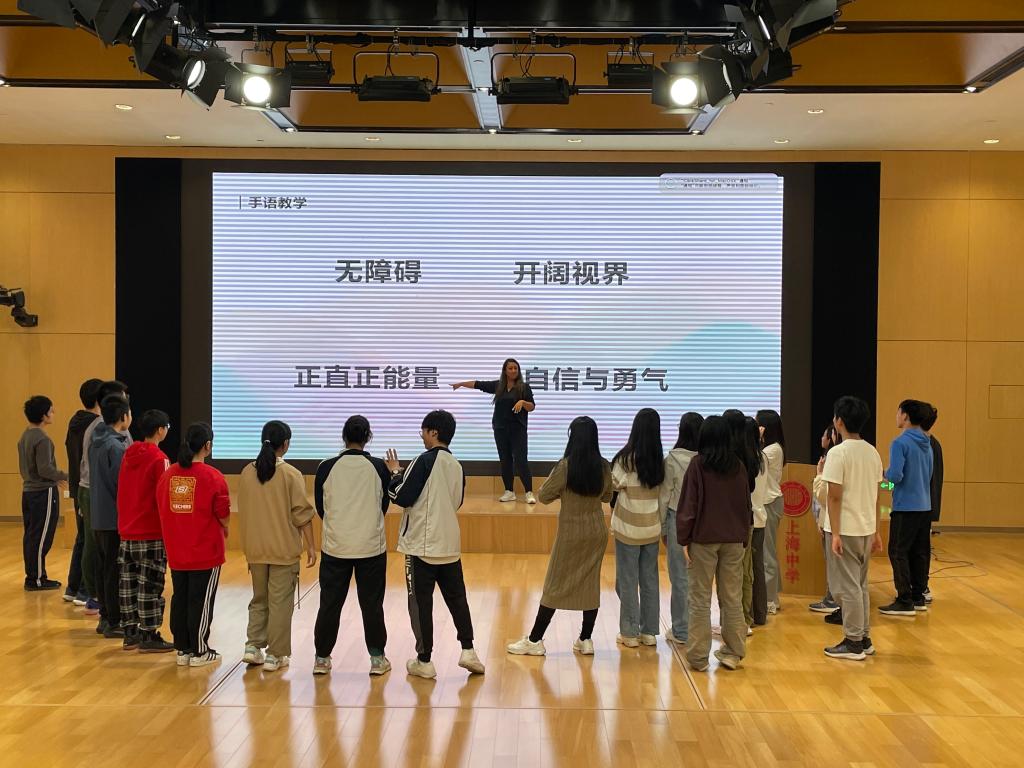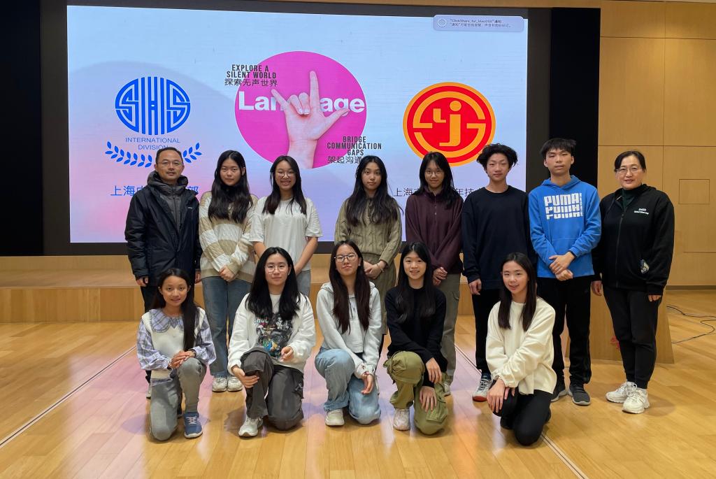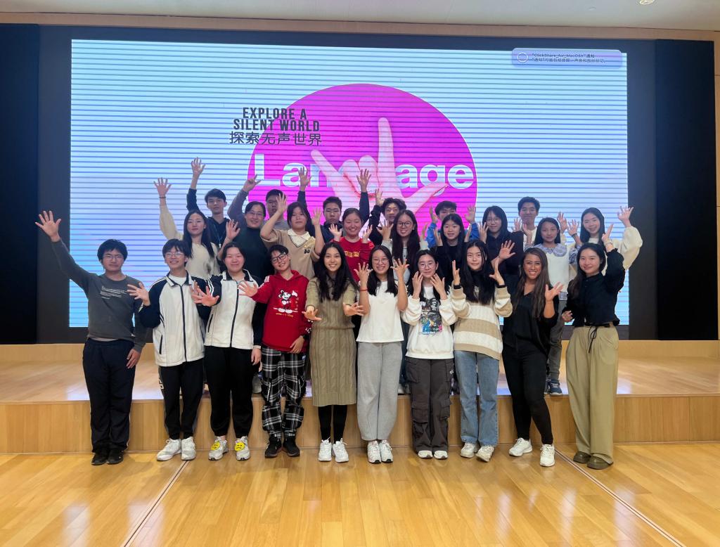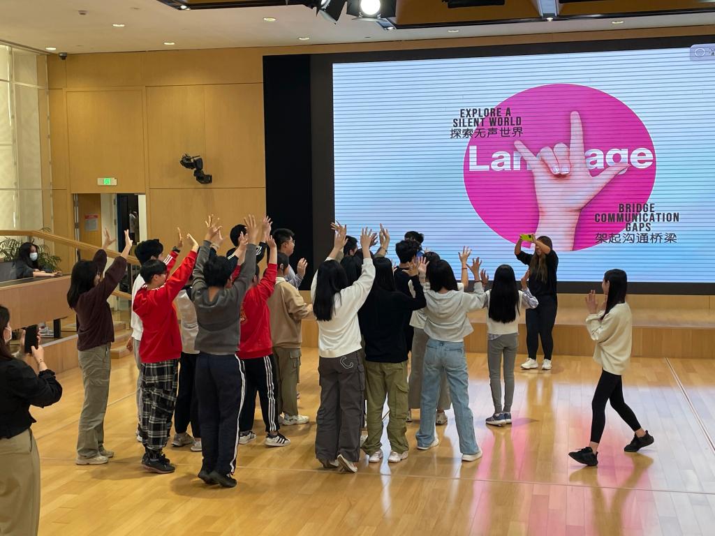 On November 10th, the SHSID Sign Language Club organized a unique club event. With the support of the school and club instructor Ms. Alice Hu, ten students and two teachers from Shanghai Youth Technical School for the Deaf were invited to our school for a cultural exchange. Mr. Ma, Principal of SHSID High School Section, and Ms. Liu, Director of the Student Center, also attended the event, providing support and encouragement to the students. The event brought students from both schools together, aiming to promote cultural diversity on campus and to break the barrier between the Deaf and hearing world through sign language. This activity brought the students closer and further allowed deaf and hearing individuals to bond through common language.