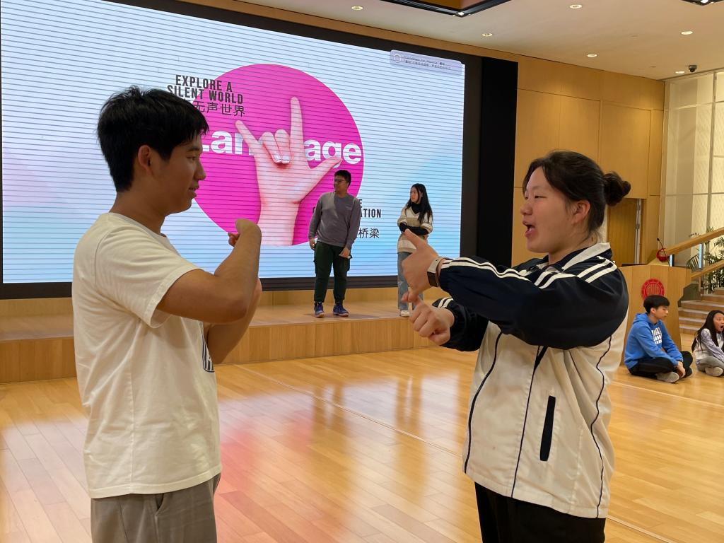 The event began with an exciting ice-breaker to help students from both schools know each other better. Each member introduced themselves using sign language. In this simple interactive moment, the language barriers that one might expect were non-existent, creating a warm atmosphere and allowing members of the SHSID Sign Language Club to put the sign language learned in class to good use!
