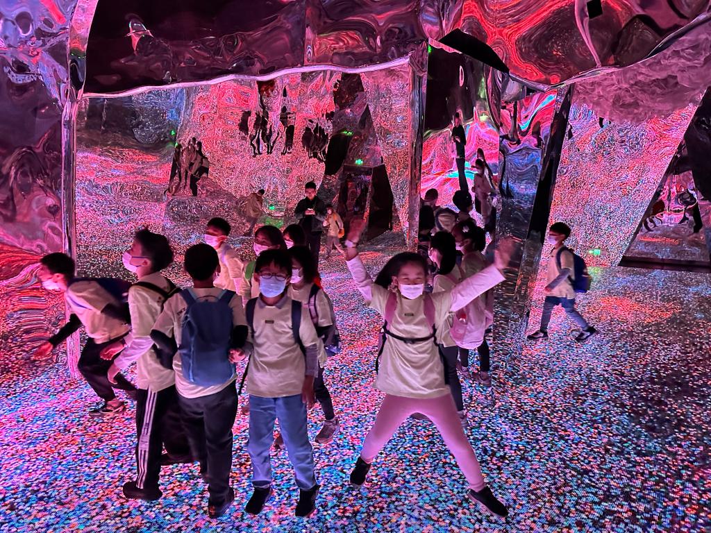 The third-grade students ventured to Disney Town, embarking on an exciting exploration of the mind-boggling SoReal VR. The theme of this technology-filled place is around the iconic Chinese literary masterpiece, "Journey to the West." Through VR technology, these third-graders transformed into righteous warriors, and participated in a series of exciting immersive programs. In addition, they also experienced the panoramic immersive light and shadows, feeling the charm of light and shadow.