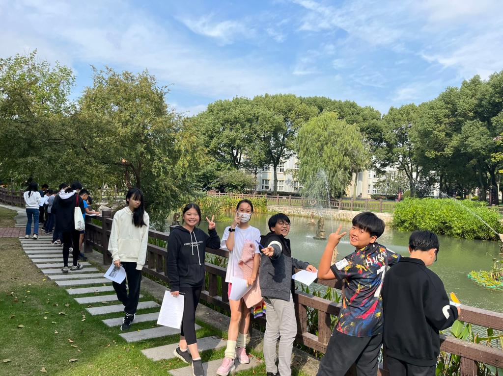On the morning of November 7th, 24 teachers and students from the sixth-grade non-native language group of SHSID conducted a unique outdoor experimental class. The teachers led the students to experience the autumn scenery on campus and exercise their Chinese language skills through recording and expression.