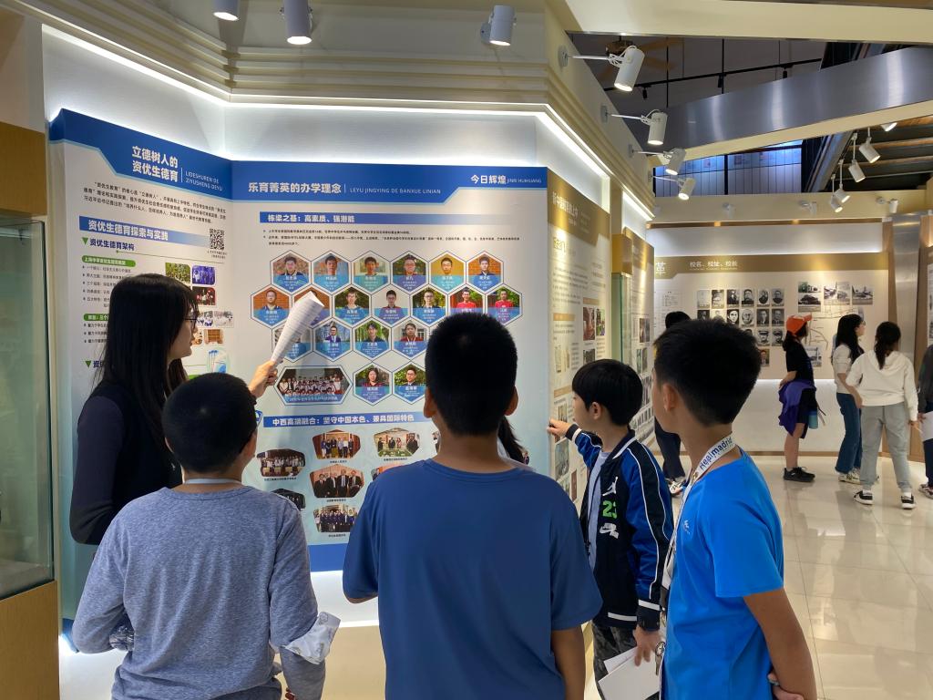 As they reached the school history exhibition at the art center, teachers from the non-native language group provided a detailed explanation of the school's development process. The students listened attentively, their eyes filled with a thirst for knowledge and respect for history. They personally experienced the profound culture of the school, fully utilizing the Chinese vocabulary and sentences they had learned to express their feelings and opinions.
