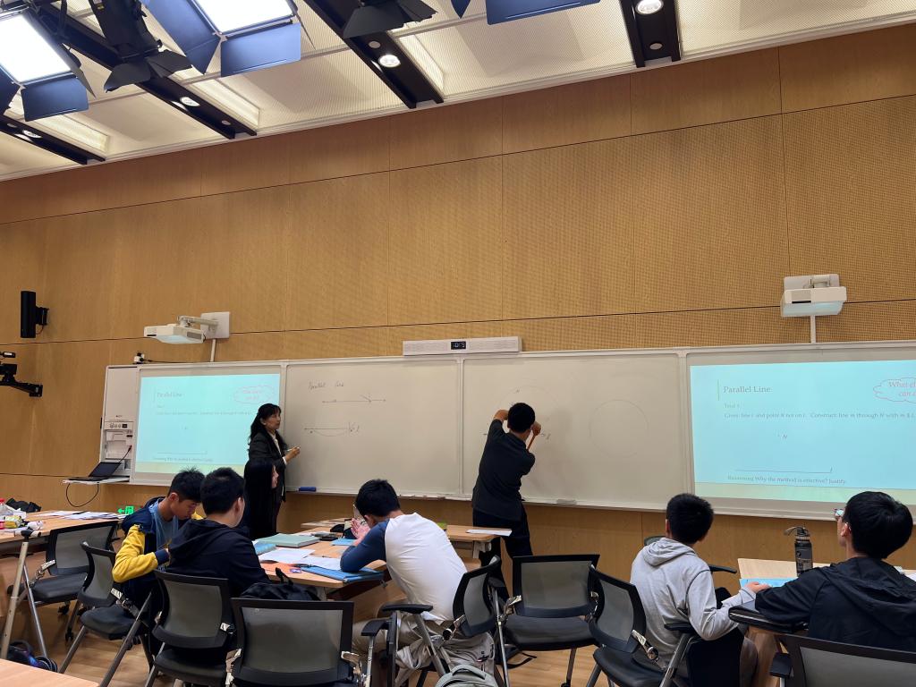 Dr. Wu's teaching design emphasized understanding the principles together with learning the methods. She encouraged students to explore multiple perspectives and solutions. During the class, Dr. Wu frequently asked questions and guided students to independently explore, compare, and summarize, using the compass and straight-edged tools and methods recorded by ancient scholars. This allowed students not only to gain mathematical knowledge and understand mathematical concepts, but also to appreciate the mathematical charm throughout the long history of China. The wisdom of many ancient scholars laid the foundation for modern mathematics, and their ways of thinking and problem-solving methods still hold irreplaceable significance today. Dr. Wu's teaching method guided the students to constantly progress and challenge themselves. It also cultivated students' creativity and problem-solving abilities.