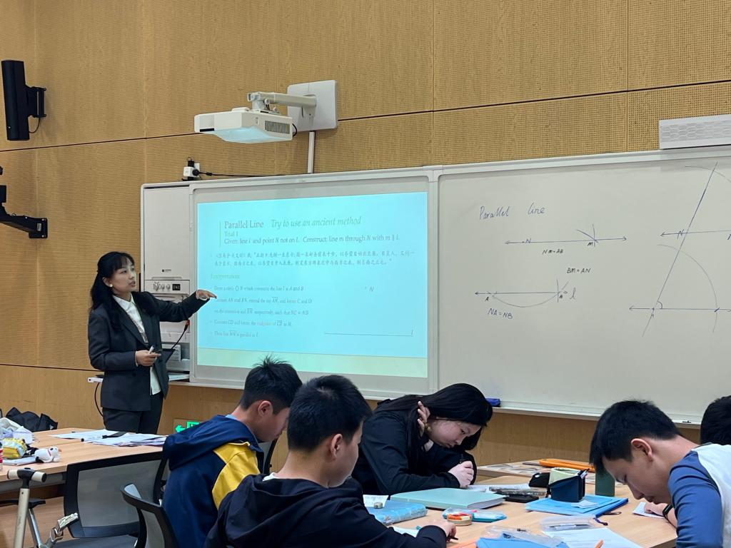 On October 27, Dr. Wu from the High School Math Department presented an outstanding open class for Grade-9 students. The theme of the class was the integration of Chinese culture and ancient mathematics through compasses and straight-edged constructions. This class allowed students to deeply appreciate the charm of mathematics and the wisdom of our ancient ancestors, while also fostering a deeper interest in the subject.