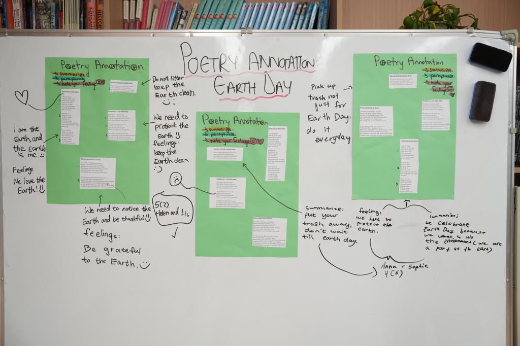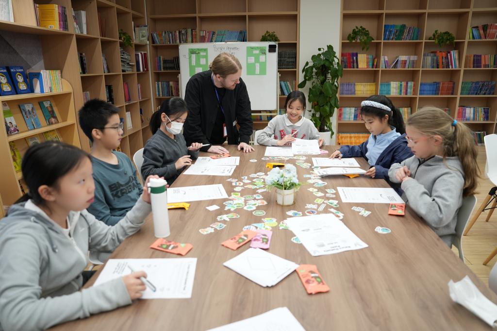 On Sunday, 23rd April, Primary and Middle School English department hosted an Earth Day event in the library of Zhongxing Building for grades 4, 5, and 6 students. Students were greeted with eco-friendly snacks and a range of earth-themed activities, including nature diamanté poetry writing, earth poetry analysis, global preservation reading comprehension exercises, and eco-friendly bookmark creation.