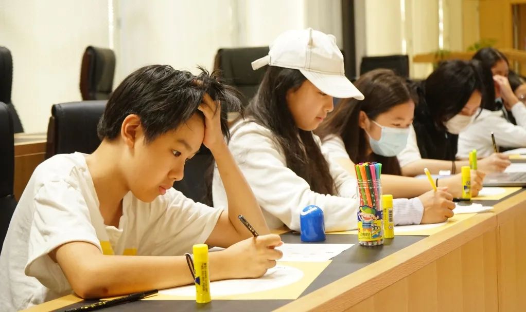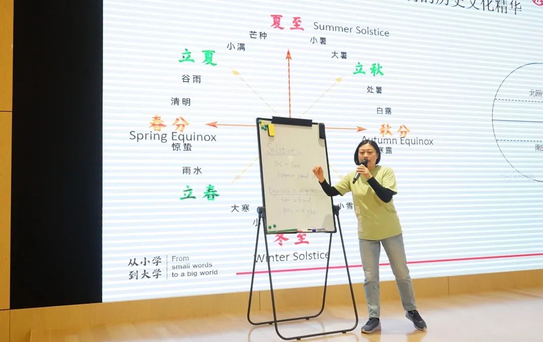 Chinese characters, known as “汉字(Han Characters),” have an origin that can be traced back to more than 3000 years ago. Grade 7 students in non-native Chinese classes attended an interesting workshop on Chinese solar terms and the oracle bone script (甲骨文). They were divided into four groups representing four seasons—spring, summer, autumn, and winter. Each student was able to create their unique solar terms project by using oracle bone script, poems, drawings, and other decorative items like dried flowers and leaves to complete their artwork on the season.