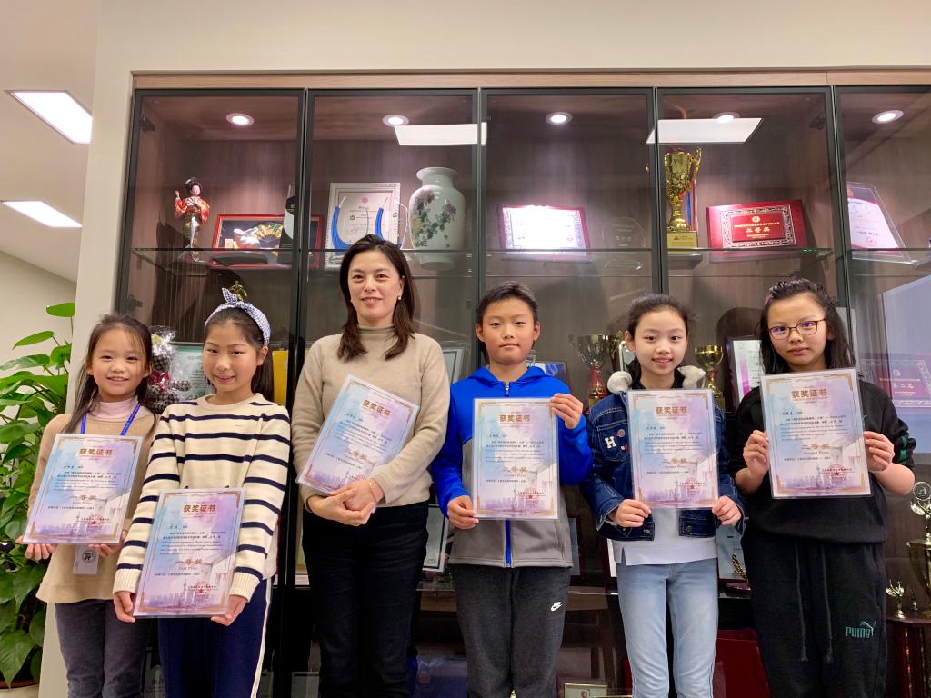 Annie from Class 4(1) and Arianna from Class 4(2) obtained the first-place prize in the primary school group level. Five students from Grade 5 also won the second-place prize. Ms. Lu Luting and Ms. Dong Xiaoqing were awarded the title of Outstanding Instructor.