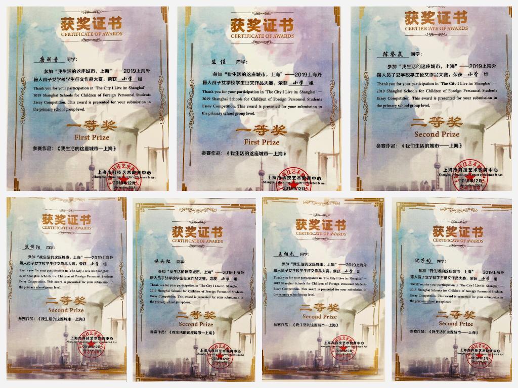 Students from grades four and five participated in “The City I Live in: Shanghai”—2019 Shanghai Schools for Children of Foreign Personnel Student Essay Competition, and we are glad to hear that some of our students won prizes!