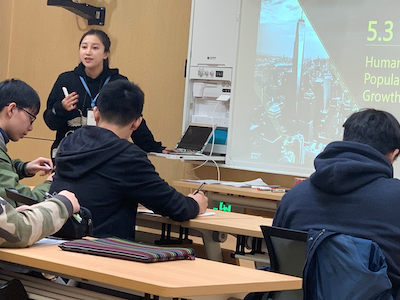 On December 3rd, Ms. Tan held an open class on “Human Population Growth” in the recording room of the Zhentao Building. In this class, the ninth graders analyzed a graph showing how the human population size changed over time and discussed what might have contributed to such changes. Then, students learnt how to use age structure graphs to predict the future human population growth pattern by building age structures with dominos.