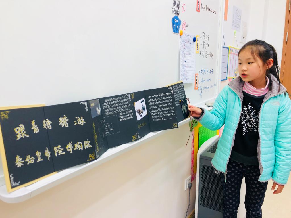 For their Chinese show and tell presentations, each child shared their work with teachers and classmates. They spoke eloquently about what they saw, heard, and thought about the land of China, and expressed their praise for the greatness of the country.