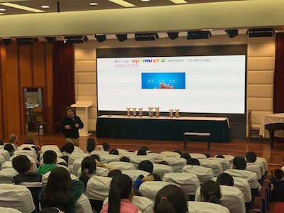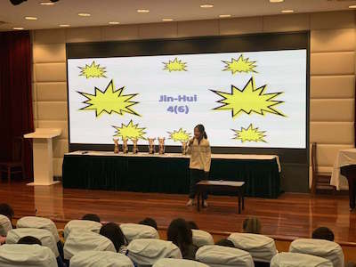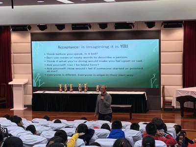 Once the storytelling competition was over, the assembly began. First, all teachers and students watched a video about the November events, which highlighted the field trip and reading month activities. Then, two foreign teachers summarized the core values of this month – optimism and acceptance. The progress the students have made thus far has pleased the teachers and parents.
