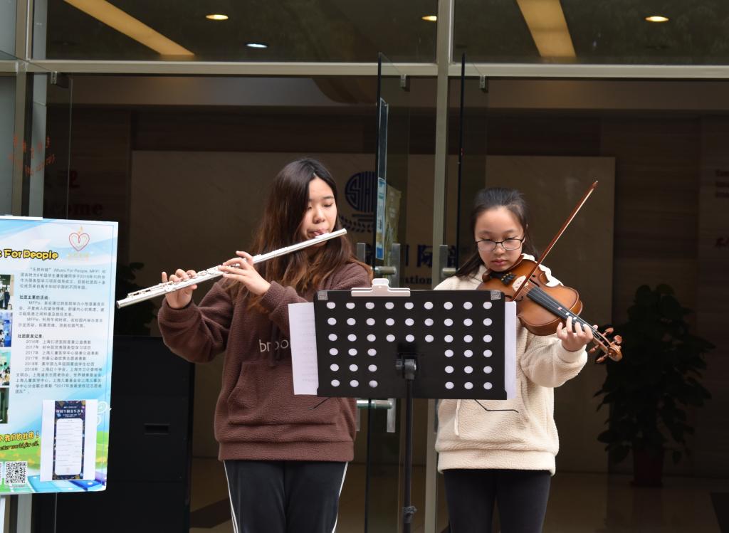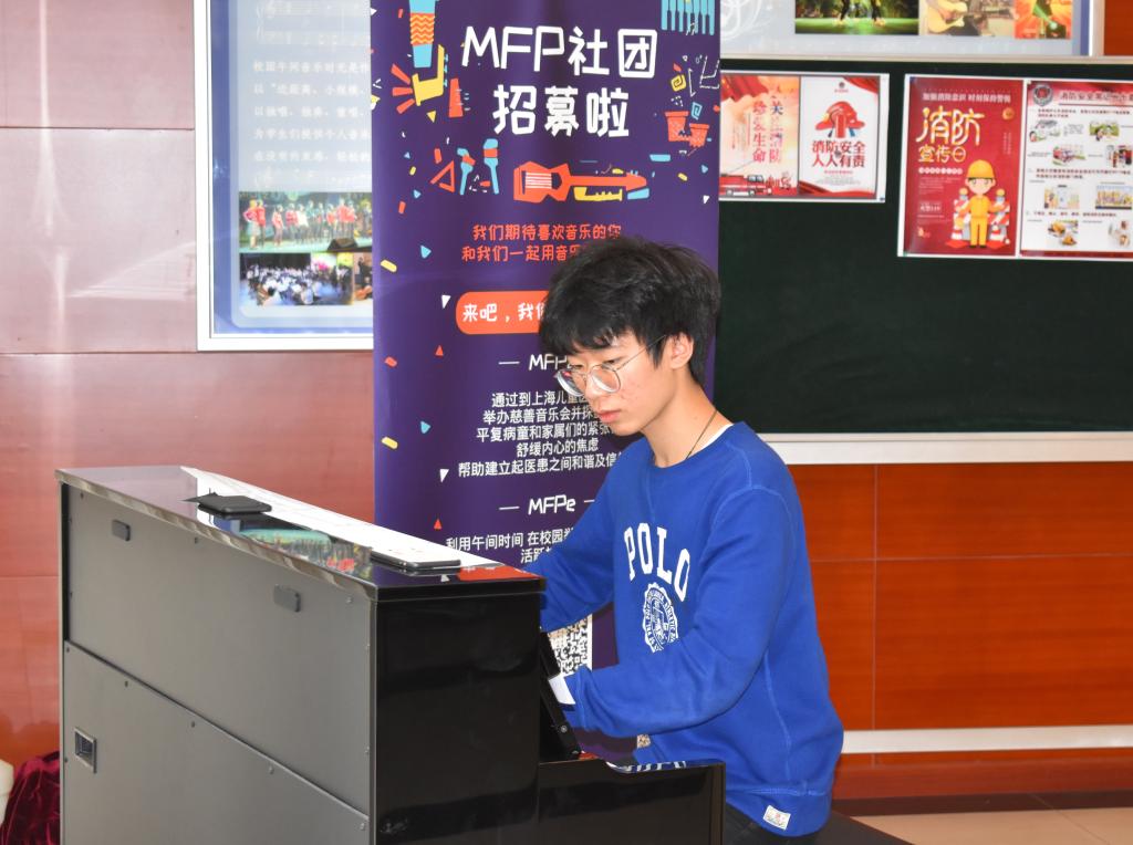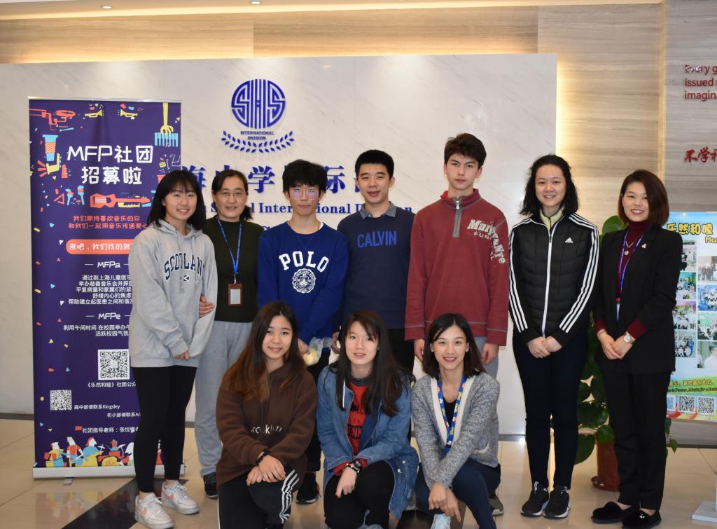 Ms. Liu Qin, the Director of Student Affairs Center, Mr. Li Xin, the instructor of the school Wind Ensemble, and Mr. Zhang Dongsheng and Dr. Zhou Dandan, the homeroom teachers of Class 11(1) and (2) were present to cheer and encourage the students. Before the music salon, Ms. Zhang Yueyue, the Grade Supervisor and advisor of the MFP Club, and Kingsley Poon, the founder and President of the club, presented the volunteer service certificate of Shanghai Children's Medical Center to the members who actively participated in various activities of the club in the last academic year.