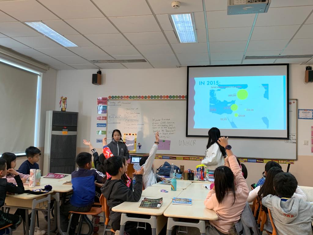 The fourth-grade students are still at a carefree stage in life and have little understanding of refugee problems that have emerged around the world. After an introduction from the seniors, the fourth-grade students learned what refugees are, saw data on the current situation of refugees in the world, and were told how they can help them. Once the main content was finished, the seniors also answered some questions related to studying and work-ethic at SHSID.