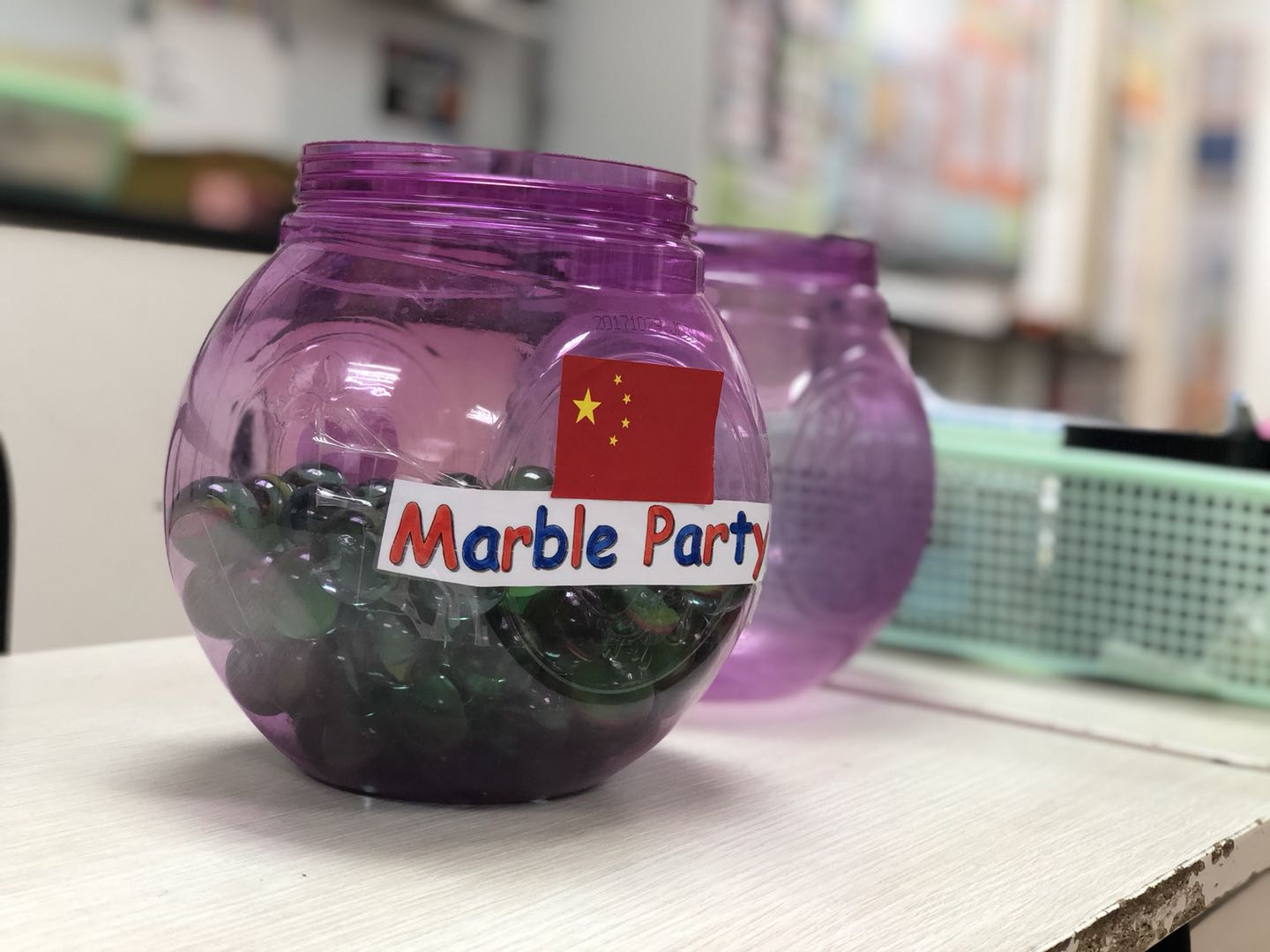 In order to encourage the students to behave even better, a special "Marble Jar" is sitting in each first grade classroom. Whenever the students perform well, teachers will put a marble in it. If it is full, there will be an unexpected surprise.