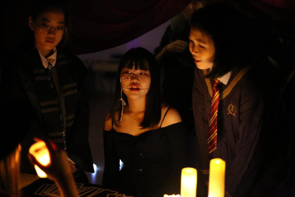 ASB members took advantage of the good environment in the ZhenTao Building and created a scary, spooky atmosphere. Blackout lasted for more than three hours. During this period, students enjoyed a variety of scary and interesting activities. On the first floor, there were scary games, movie rooms, challenge rooms, photo booths, and many other innovative activities. The basement of the ZhenTao Building was the highlight of Blackout—the haunted house. The ASB spent a week perfecting this fantastic haunted house experience. After taking the elevator to the basement of the ZhenTao Building, a gust of cool breeze blew on students’ faces and horrible music greeted them. Wearing heavy makeup and sitting on a rocking chair was the ghost mother, while puppets wearing masks were sitting on the table, and the walking dead were frightening students. Students were placed into an atmosphere of horror: some people screamed, some tried to escape as fast as possible without turning their heads around, some even panicked in tears...