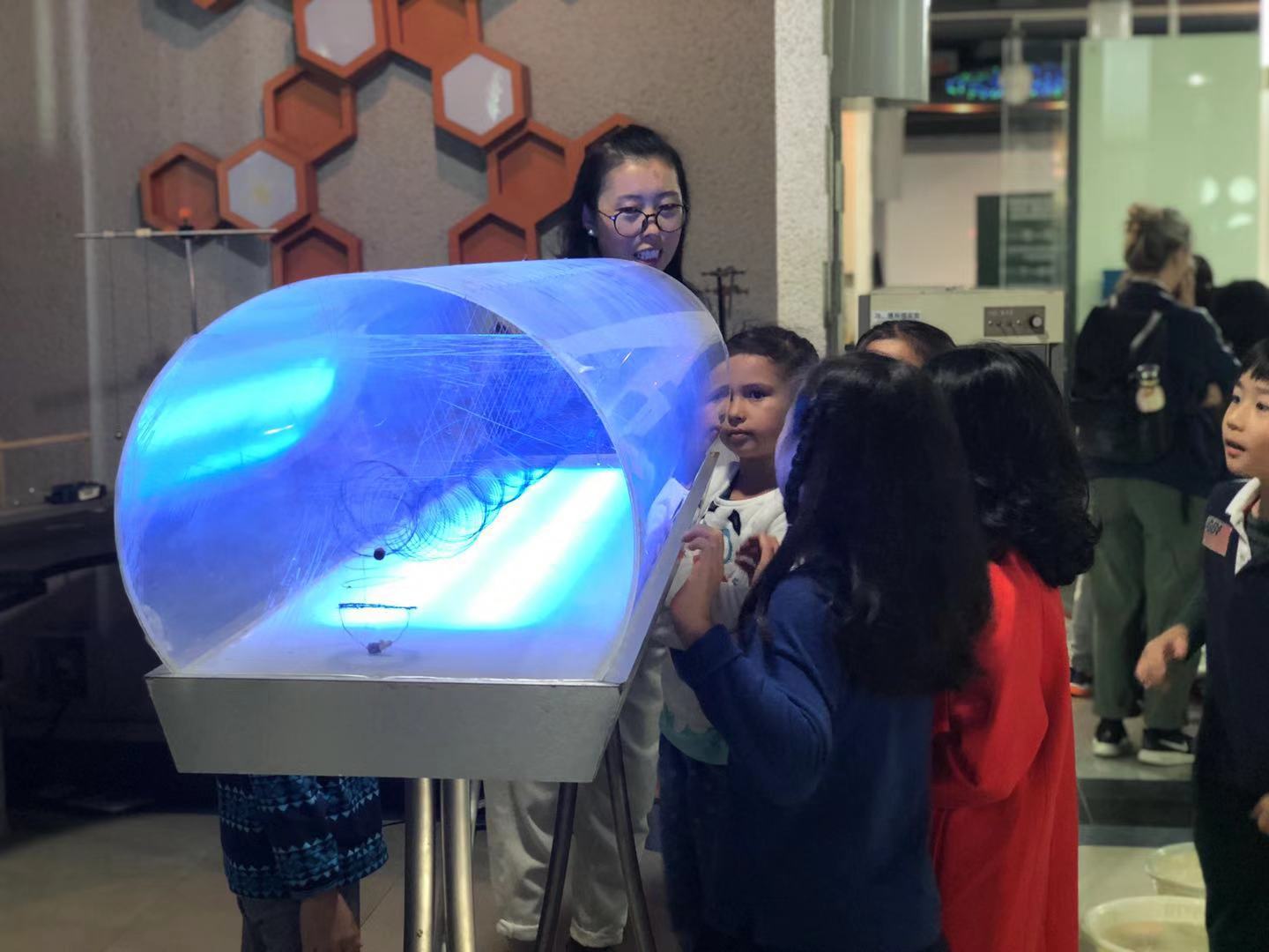 Firstly, the teachers from ECNU did a mechanical experiment. During the experiment, the teachers explained how to use a variable-controlling approach and shared useful scientific methods. The students said that they could use the methods for their science fair projects. Afterwards, the third grade students visited STEM classroom to experience different fun activities.