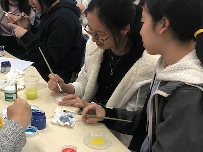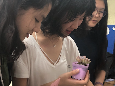 On October 30th, high school students and teachers at SHSID had their annual Science Fair in the Zhentao Building. The four activities that the biology department hosted—medium painting, succulent plants, making bookmarks with dry flowers, and Heads Up—attracted many students. During these activities, students created interesting art, learned how to plant and take care of succulent plants, made gorgeous flower bookmarks, and reviewed biology terms in the Heads Up game. Through these hands-on and minds-on activities, students experienced the fun of biological science.