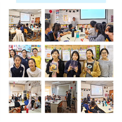 The students were separated into four groups of four, each group being in charge of a specific classroom. The 7th graders visited class 4(4). Norah from 7(8), Katrina from 7(11), Chloe from 7(3), and Angela from 7(1) all presented their own books:ShiSheng,A Street Cat Named Bob,The Giver, andEducated, respectively. Each student presented their book, either in English or in Chinese, with a carefully prepared PowerPoint, which took about 5 minutes. The student audience listened with fascination—laughing joyfully at familiar names and responding actively at shocking information.