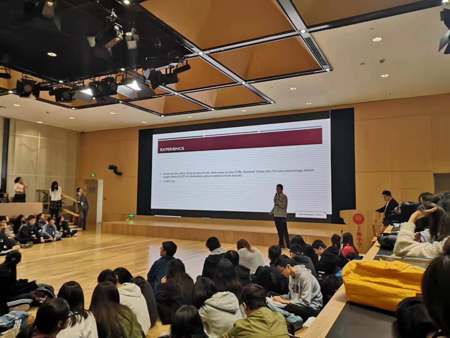 On the morning of October 29, the students of Grade 9 gathered in B1 of Zhentao Building to listen to Eddie Chen deliver a speech about the CYBL competition. The CYBL competition stands for China Youth Business League. In this significant contest, Eddie and his teammates won the First Prize last year. He said the most important thing that helped them accomplish this goal was good teamwork. He explained that the reason for their good teamwork is the fact that his teammates are intelligent and agreeable. Their intelligence led them to break historical records in this competition, and their agreeable natures helped them cooperate efficiently without arguing. This tip is significant because some of the students at SHSID had trouble on their teams because they could not agree with each other. This speech inspired students to team up more wisely, which will help them achieve better performance through cooperation.