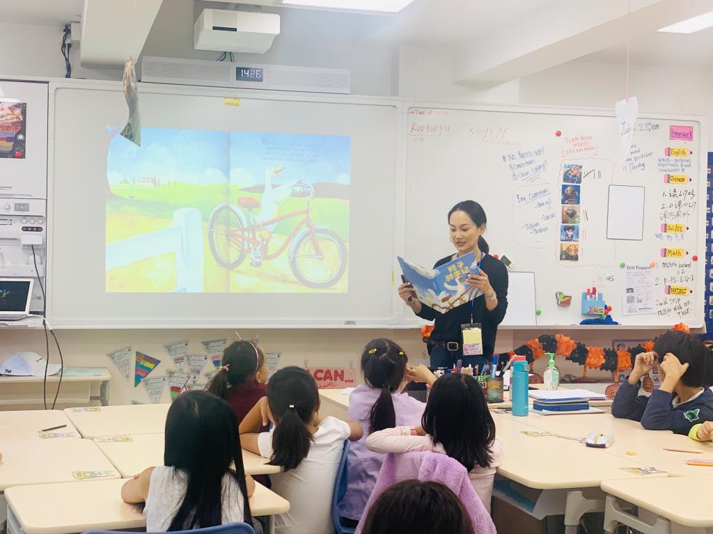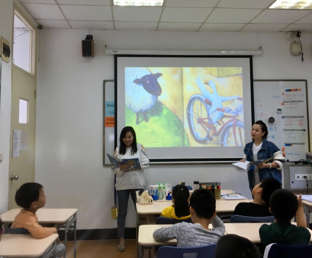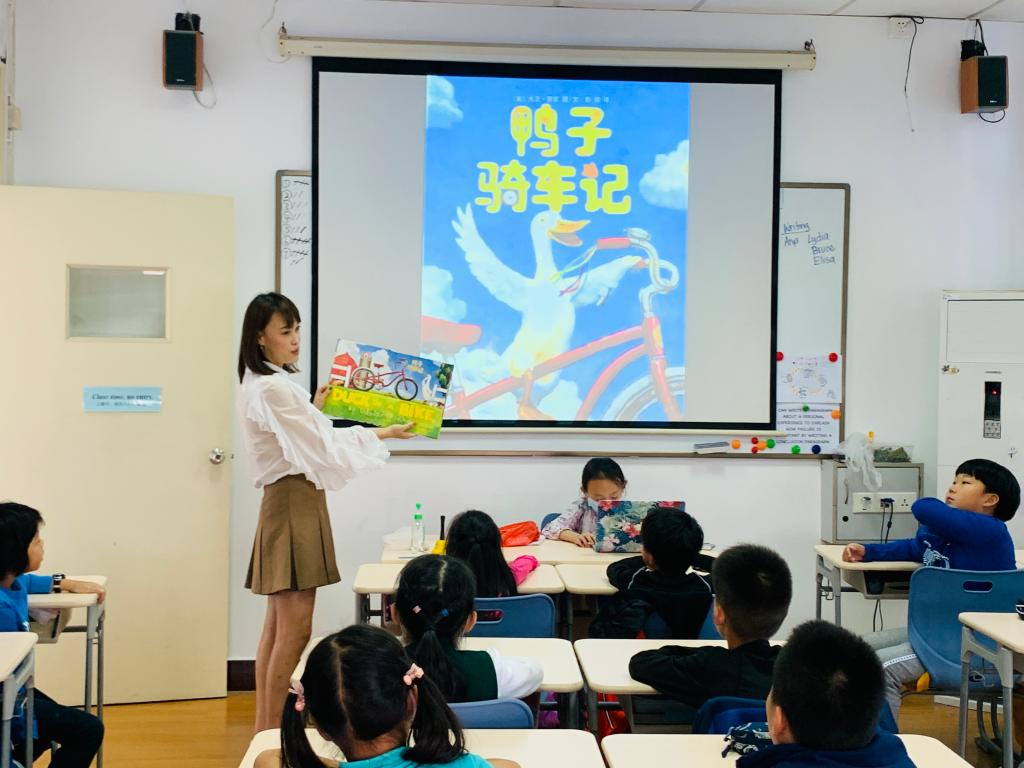 On October 23rd, in the Personal Growth class, the Story Moms visited again! This time, they brought us the story,Duck on a Bike:a book by well-known American illustrator and author David Shannon. In the story, the duck riding a bike met lots of animals on its journey. Some animals showed admiration towards the duck, others showed disdain and some of them laughed at the duck. In the end, the animals followed the duck and tried to ride the bike. All of the animals had a great time! To consolidate understanding, some kids even wore masks and worked together to create and perform a short play!