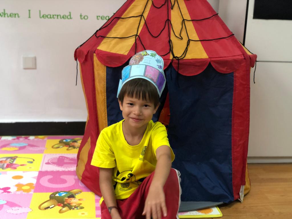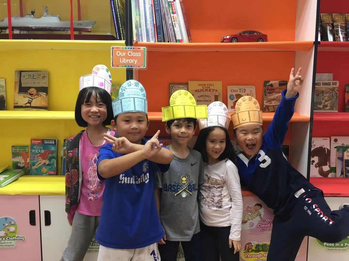 The first grade students have almost completed their Pinyin studies. In the Chinese class on Oct. 16th, the children learnt to make interesting Pinyin hats with the Chinese teachers. First, the students traced and marked the tones of the given pinyin. Then, they thought of the words according to the Pinyin and drew related pictures. Lastly, they cut out the pieces of the Pinyin hat and glued them together. The students were so proud to wear their Pinyin hats and happily showed them off to each other. From this activity, students not only had lots of fun, but also consolidated the knowledge they have learnt and elevated their interest in Chinese learning.