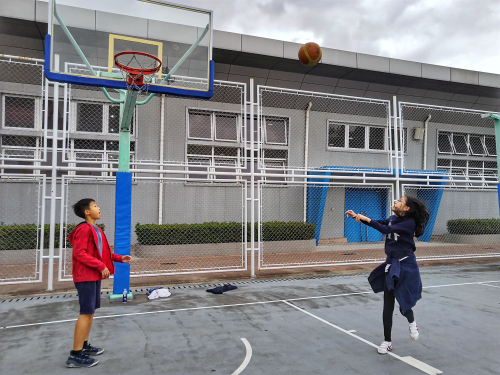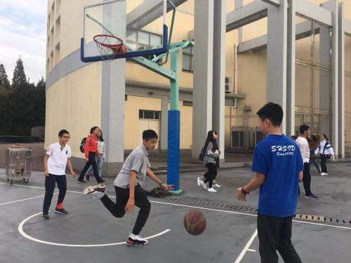 The basketball team was scattered among the classes, like Wesley Yu from 7(7), who was getting the rebound to give the ball back to the shooter, and Jeffery from 7(6), who repeatedly shot and scored.