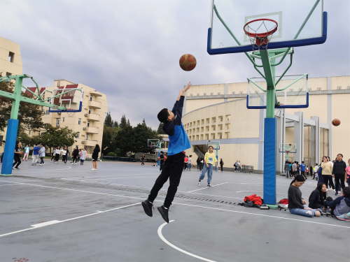 The seventh grade students gathered at the big basketball court to participate in the basketball shooting competition. The basketballs were provided by individual classes and one court was assigned to each class.