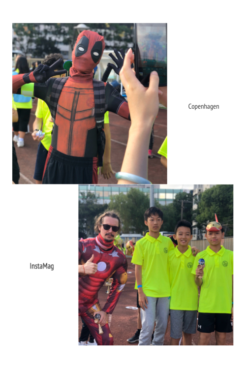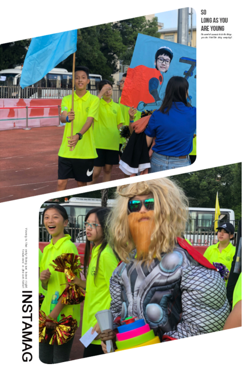 Each class was well prepared for the different topics assigned previously. The 7th graders’ performances were based on Marvel characters. The famous Avengers appeared in front of us again, including the Hulk, Iron Man, and Captain America. Each class’s representative wore a superhero costume and acted like they were fighting enemies. The students in 7(4) performed Black Panther’s trick of fighting a group of people. Our classmates regarded the field as a big stage, and the entertaining performance along with the heroic plot ended with roaring applause. The eighth grade seniors represented the cities that the Olympics were held in: Athens, the city in which fire was invented; Barcelona, the city that has magnificent architecture; London, the city with strong aristocratic flavor. Of course, the host city of the 2008 Olympic Games, Beijing, was indispensable. The ingenious torch relay symbolized the incessant fire of the movement, making the whole entrance performance more ritualistic.
