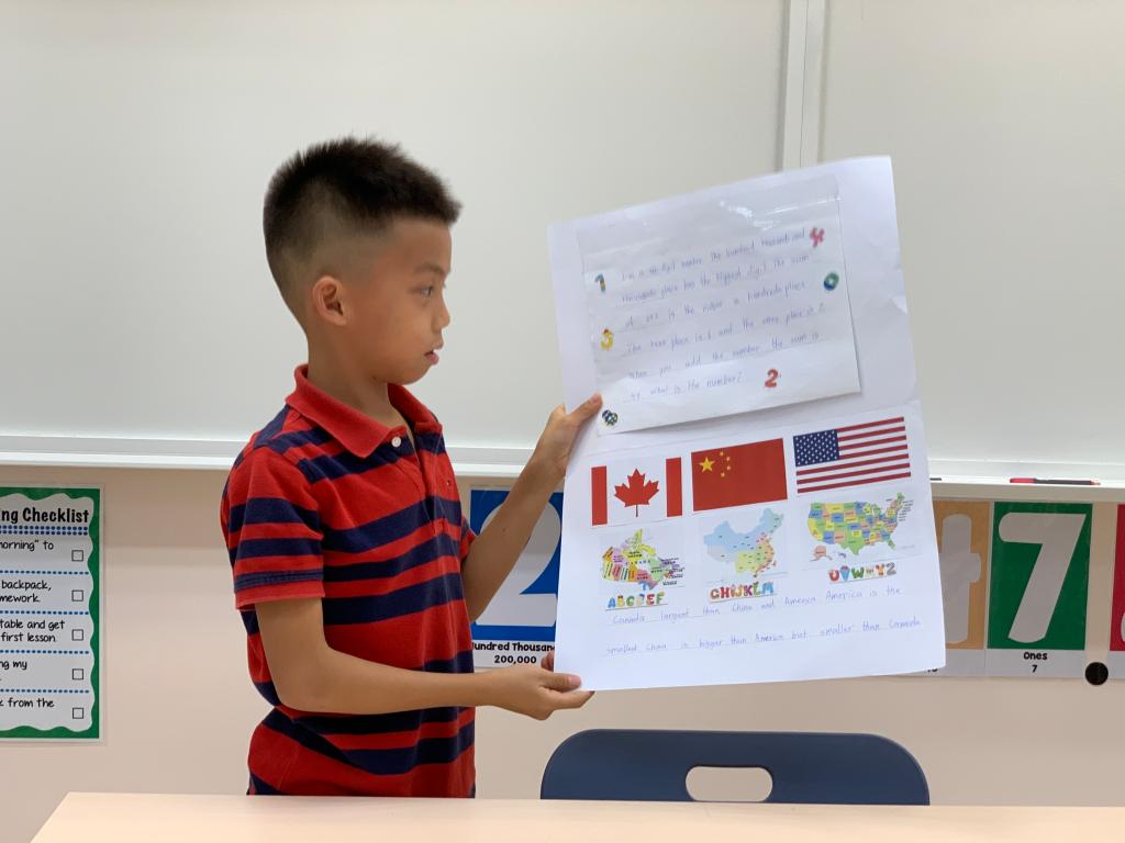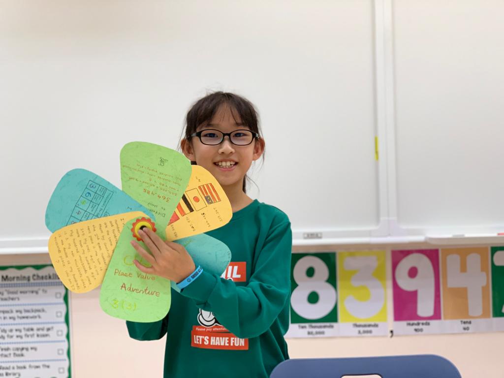 To reinforce students’ understanding and application of mathematics subject knowledge in practice, Grade 3 carried out a math project display & presentation activity called “My Place Value Adventure” on October 8th. After a whole week of preparation, students presented their math projects with great confidence and fluency. This activity requires students to showcase their learning in flip books with content such as number riddles and configurations of different countries on each continent, which not only tests their mathematical knowledge and skills but also promotes interdisciplinary learning.