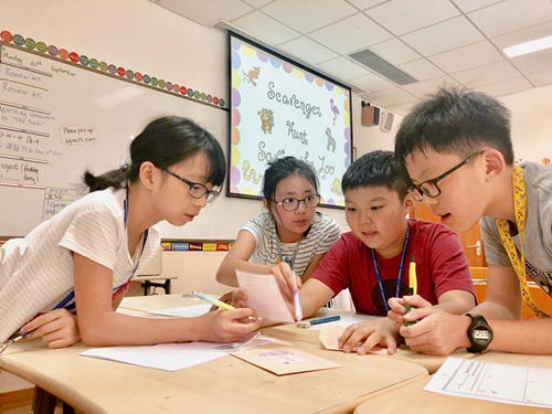 "Saving the Zoo" was the theme of the game. Students needed to put escaped animals back into enclosures by solving math problems. The grade-four teachers prepared different sets of cards in advance, each with a math problem on it. The cards were hidden in every corner of the classroom. Students could only get clues for the next problem by solving the problem on the previous card. Each class was divided into five groups, each appointed a different color. Only by solving all the problems in 40 minutes could they successfully "save the zoo".