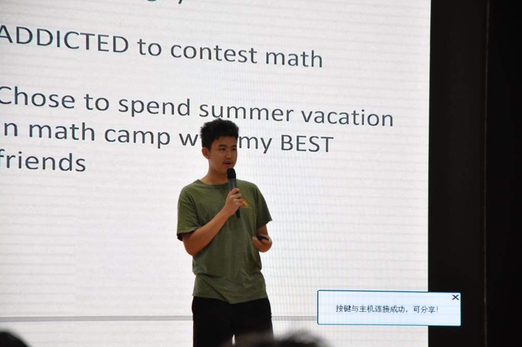 The presenter for week 4 was Max Liu. The topic was about an awesome math summer camp that he and some of his friends went to during the summer holiday. The presentation started with his hobbies, one of them being competitive math. He then introduced the different math competitions, why he believed that everyone should love math and that math is something more than fulfilling their GPA requirements.