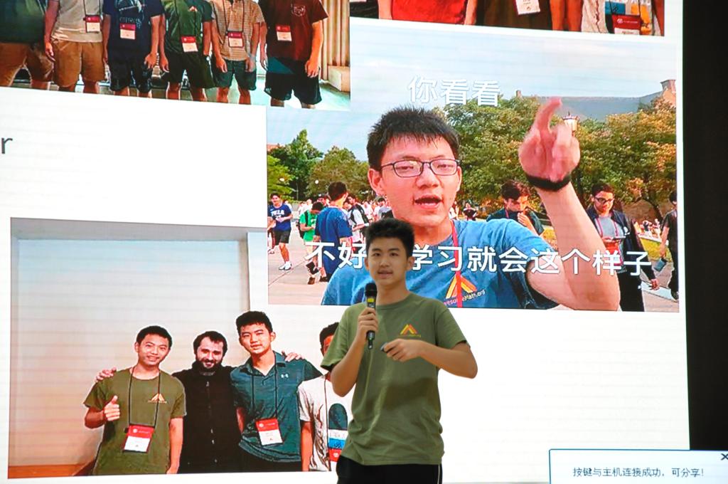 After that, he went into the topic—the awesome math summer camp. He introduced how the summer camp works: 6 hours of math a day and weekly assessments. Then he introduced the subjects that would be studied in the summer camp. Lastly, he showed a few math questions that would appear in the awesome math summer camp entrance tests and weekly assessments for anyone that was interested in the camp.