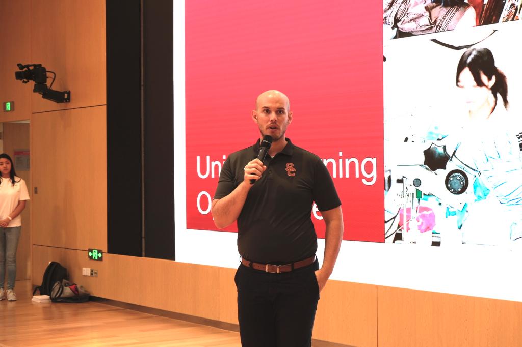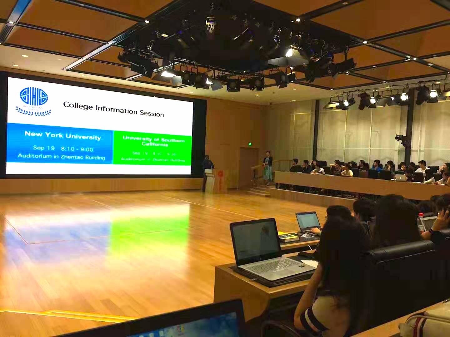 On the morning of September 19th, admission officers from New York University and the University of Southern California came to the campus of Shanghai High School International Division to host an information session. During the information session, both admission officers discussed the major highlights and features of each university, including academic resources, research opportunities, internship and career centers, the diversity of students, and varied extracurricular activities. New York University specifically mentions its advantageous geographical location in New York City that promises multitudes of opportunities and benefits. Campuses in Abu Dhabi and Shanghai also add diversity and global perspective to the school. In addition, the University of Southern California provides plentiful academic resources in numerous schools, with its School of Communication and Journalism being one of its strongest strengths and focuses. Then, the admission officers offered a detailed process of the holistic review of the applicants, including test requirements, personal statements, essays, and financial aid. Finally, the admission officers patiently answered the more detailed questions of many students who are passionate about both universities. The admission officers were also kind enough to provide students with many one-to-one Q&A opportunities.