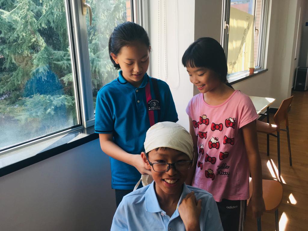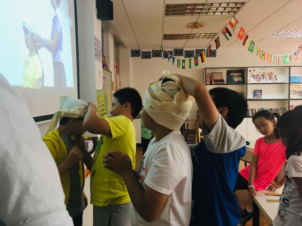 Grade 5 held a first aid educational session in the P&B class on Sep. 24th. Students learned different bandaging skills from video clips and from their teachers. They were then broken into groups and practiced their freshly acquired skills in a class competition. Our students tried their best to finish the competition both quickly and properly. Through this class, the students benefited by acquiring not only the basic first aid knowledge but essential skills.