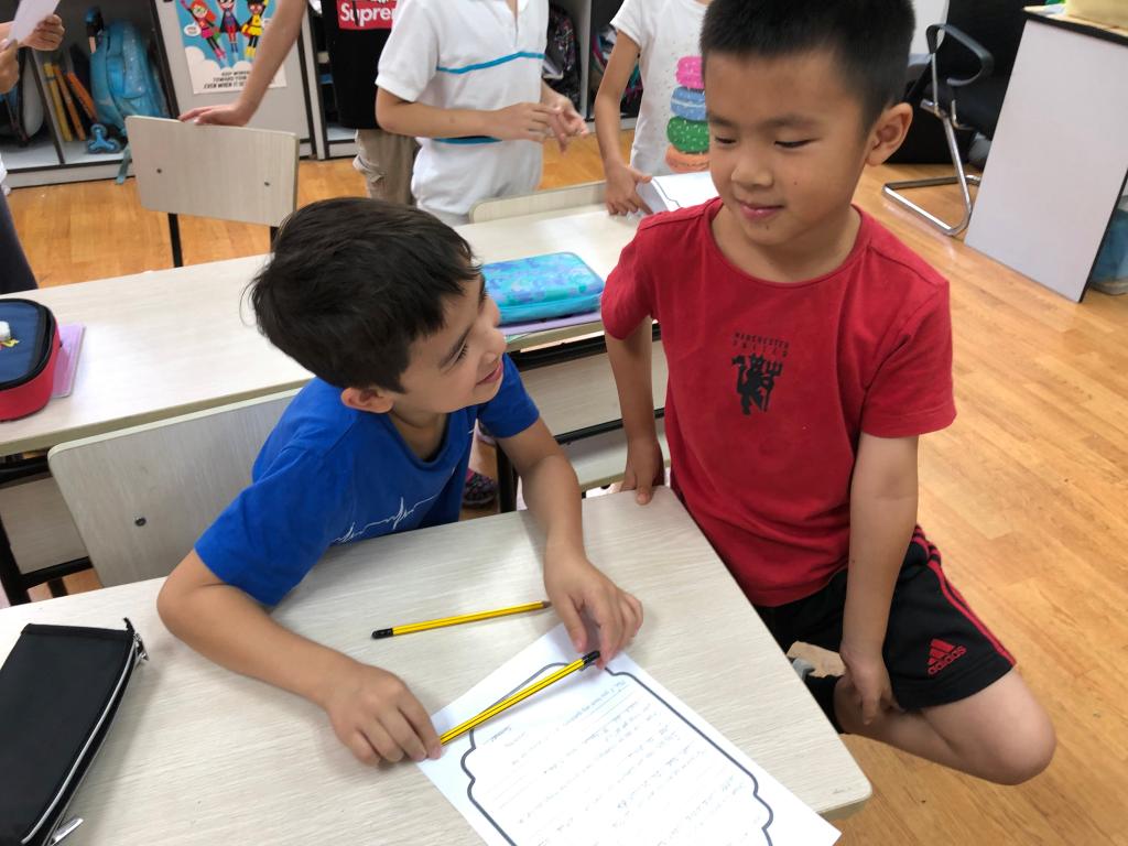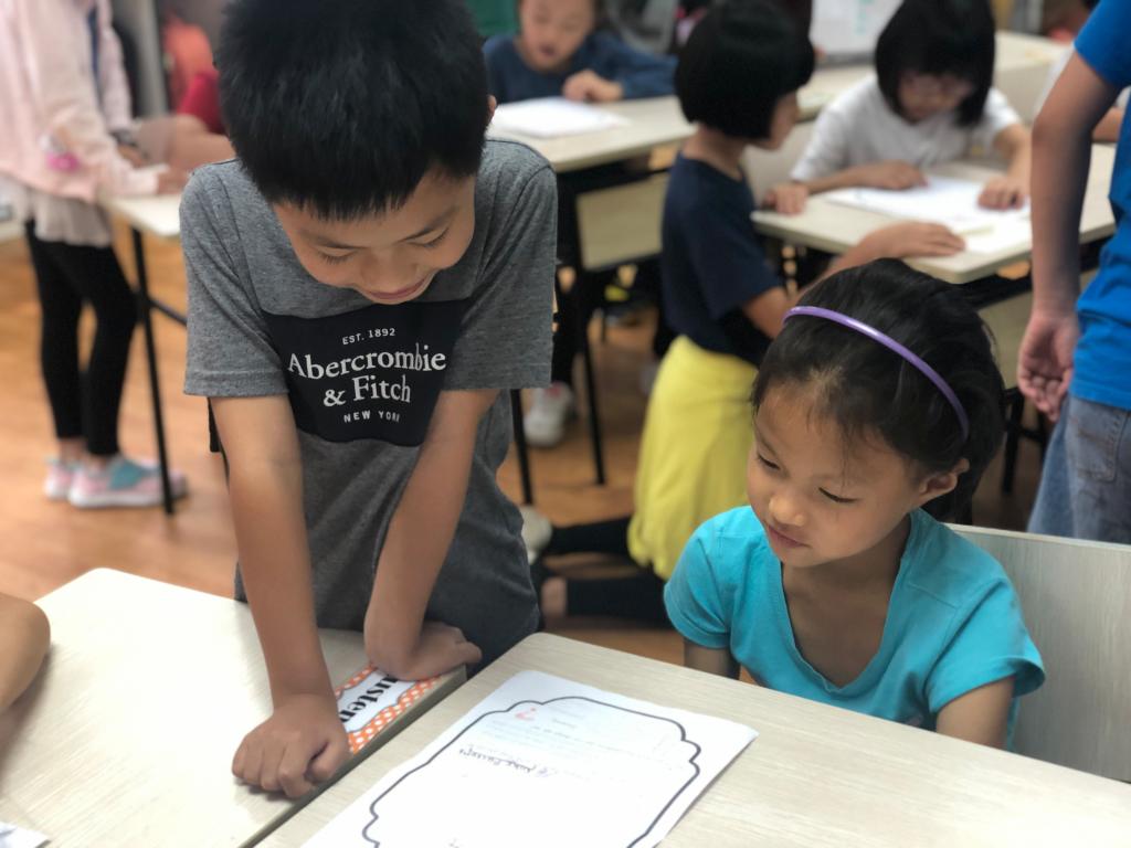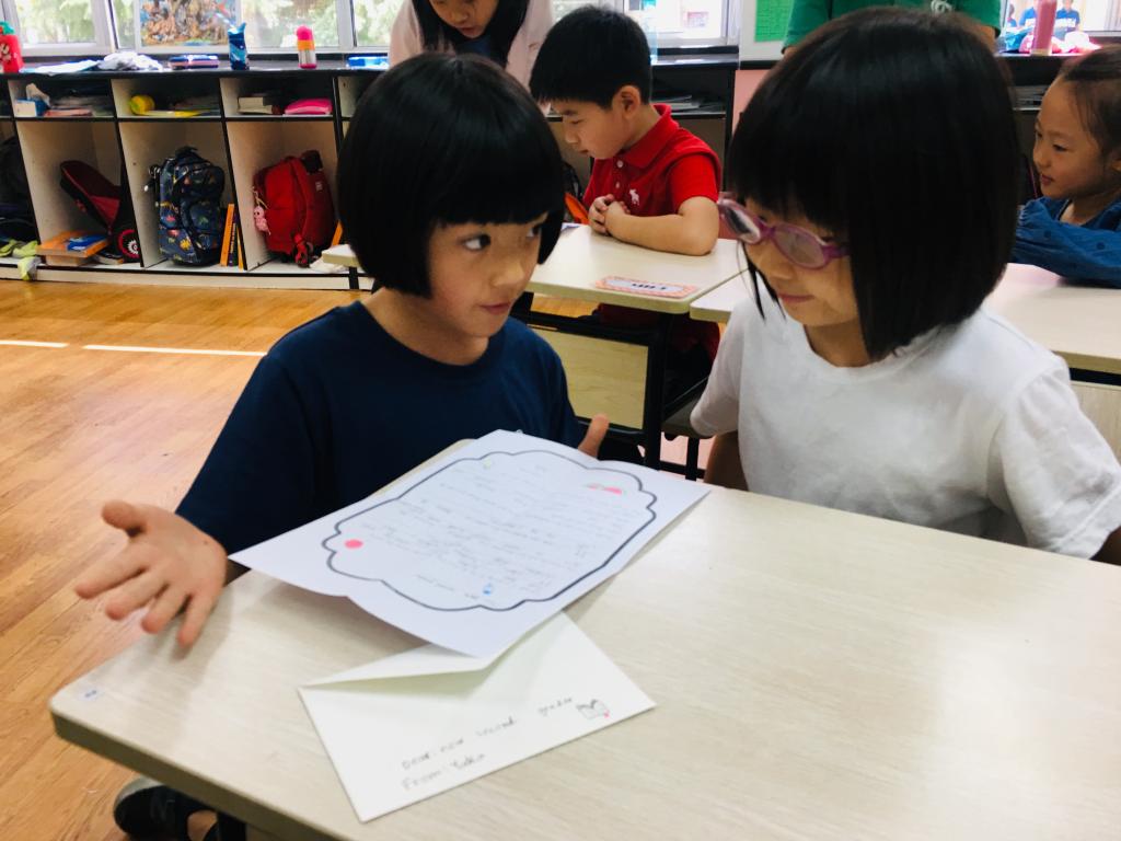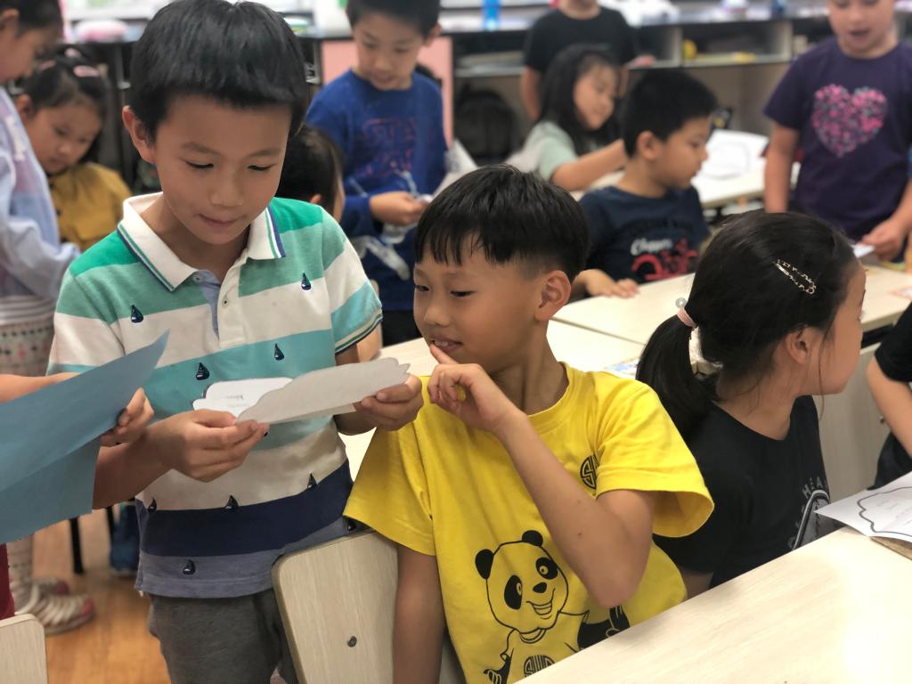 The handwriting on these letters might have been a little hard to read, but the words and phrases reveal the sincere feelings of the writer. That’s because these letters were written by the current third-grade students on their last day of second grade. They used their most authentic feelings to share their unique and valuable experiences. For example, one student shared that her favorite books were hidden at the bottom shelves of the second row of the library; one shared that if you want to be well-liked, you have to learn to care about others first; another shared that second-grade homework is not difficult at all and that there are many games to play in class. On Friday, grade three students came into the second-grade classrooms and shared all of their true experiences by reading the letters to the second graders. The second graders were delighted and listened very carefully.