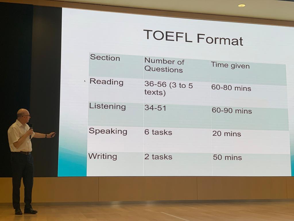 During 6th period on September 19th, students from ninth grade assembled in the B1 auditorium to listen to a lecture about the TOEFL and IELTS exams. Stephen Graham informed the students about these standardized tests and helped the students distinguish between the two. Staying informed about these tests is essential for all ninth-grade students as they will influence their future applications to colleges and universities. Mr. Graham gave suggestions and clarified many questions from the ninth-grade students. The students gained a better understanding about TOEFL and IELTS scores, levels, examination times, test forms, and the preferences of different English-speaking countries. Through this lecture, students realized not only the significance of the results of these standardized tests, but also the importance of being able to use and communicate in English as a language. Mr. Graham emphasized the fact that standardized tests aren’t courses of studies, but a test to examine one’s proficiency in a language. He also reminded the students that the purpose of studying is not to do well on a test, but to improve oneself and progress onto higher levels, building stable platforms for their futures. Students listened carefully, payed attention throughout the presentation, and learned more about the tests.