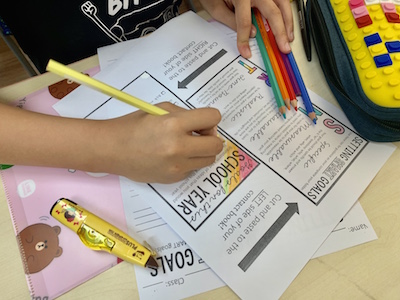 During the Personal Growth class on September 19th, the fifth-grade students were encouraged to set their own personal goals for the school year. With guidance from their teachers, they were urged to use the SMART acronym for goal setting: Specific, Measurable, Attainable, Realistic and Time-bound. The students came up with a variety of different goals, such as reading 10 English books, and improving the quality of their homework.