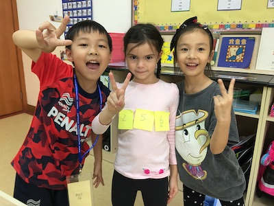 At SHSID, our students have their math classes taught in English. To help our students adjust to learning math this way, our grade one math teachers have designed a wide variety of interesting math activities that encourage student engagement and participation in lessons.
