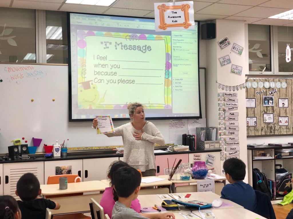 On Sep. 10th, during PG class, the 3rd grade students at Pudong campus learned how to send an “iMessage”. Students are supposed to “send” iMessages if they have conflicts with others. Homeroom teachers in the 3rd grade have been teaching students how to settle arguments and problems by themselves before looking for help from the teachers. This is a learning process, and the third-grade students should become mature enough to solve conflicts independently. Properly expressing their feelings and expectations is a crucial step to learning how to solve conflicts by themselves.