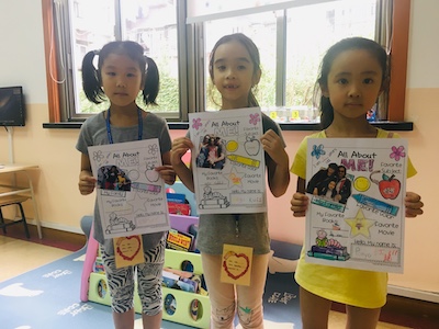 To help the students get to know each other and make new friends quickly and successfully, the first-grade teachers designed the “All About Me Self-Introduction Sheet”. Every student finished filling out the form during their PG class on September 11. Beyond basic information such as name and age, every student shared his or her favorite things; such as their favorite movie, book, color, etc. Family photos with many big smiles were also included.