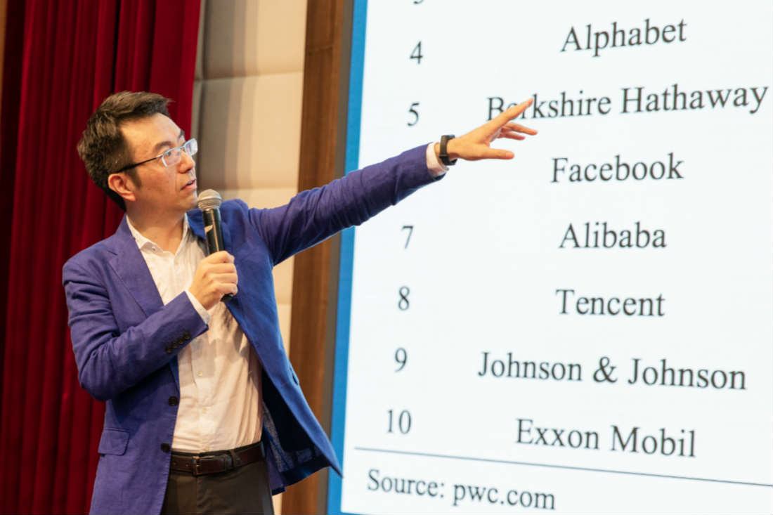 Professor Qian first displayed some photos of famous financiers and entrepreneurs. After briefly introducing the accomplishments of these people, Professor Qian put up another list of big, world-renowned companies, which included famous tech giants like Apple and Tencent. After discussing the type, development, and influence of such companies, our lecturer began to introduce some relevant information about finance, such as purpose of investment and several common investment methods include bonds, funds, and stocks. Professor Qian emphasized the importance of choosing the right company for the best return, while considering different market types in the scope of macroeconomics. It is also important to consider the impact of government policies on companies and markets. In addition, he introduced types of investors and how a company can progress from creation, financing, expansion to restructuring, and even to bankruptcy.