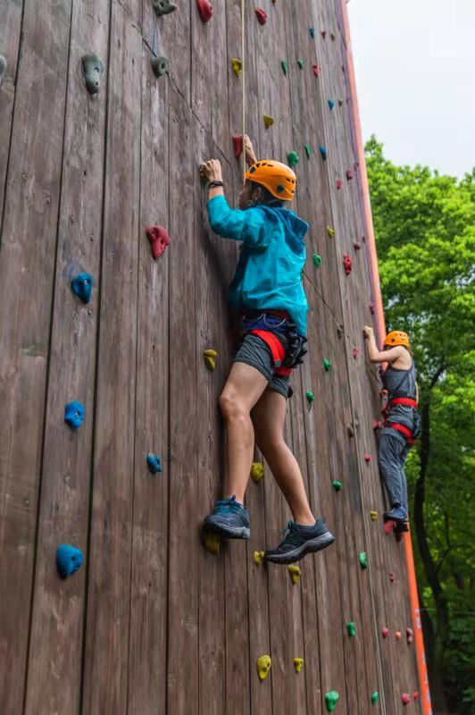 On day 2 of the orientation camp, the seniors welcomed a new day full of challenging yet exciting activities. After finishing breakfast and collecting their tents, the students assembled on the central grassland for the altitude challenge, during which the students had to get through a 5 meters long narrow passage in the air. Everyone was enthusiastic and full of team spirit; many students helped other teammates with a fear of heights to complete the task. Concurrently, another group of students participated in water sports to cool down and boost team cooperation between all group members.
