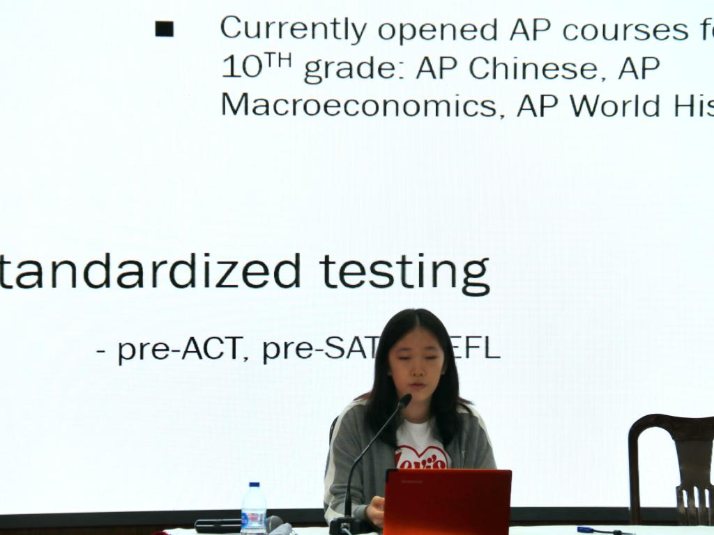 At two o'clock in the afternoon, XMT Annex was filled with people waiting for the ninth grade director, Ms. Wu Chen, to provide a general introduction to high school life. Ms. Wu made a detailed and direct speech on aspects such asstudy, curriculum, performance, activity, competition, and behavior to lend a varied perspective and help students develop clear expectations. Closely after Ms. Wu’s speech, SHSID’s college counselor, Ms. Cui, introduced another topic that is of students' great concern—university enrollment. On this topic, Ms. Cui put forward plans and suggestions for all four years of high school, taught the students how to use relevant information to finish university applications more efficiently, and provided an abundant amount of resources to help students and parents retrieve more university information. The ninth graders listened attentively and jotted down notes from time to time so they would not miss any detail.