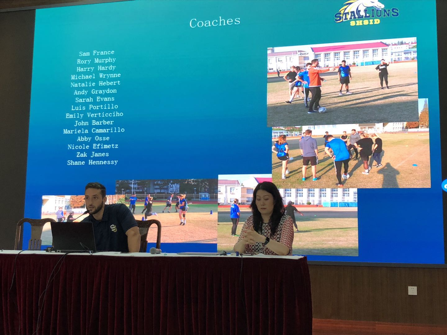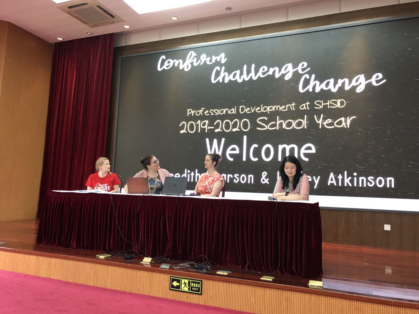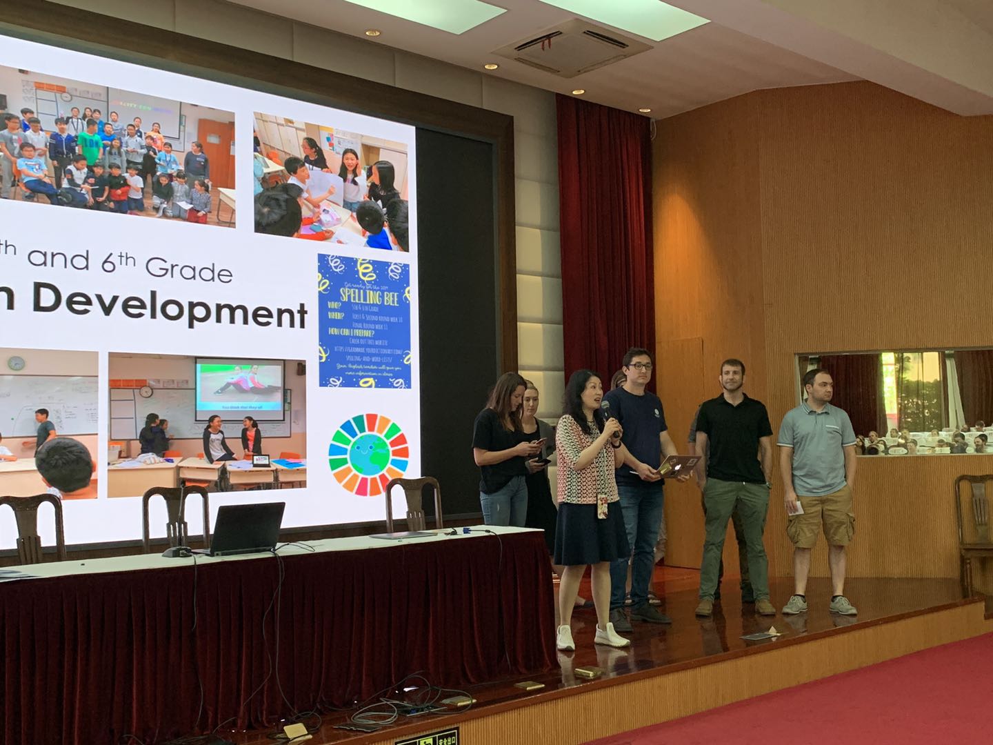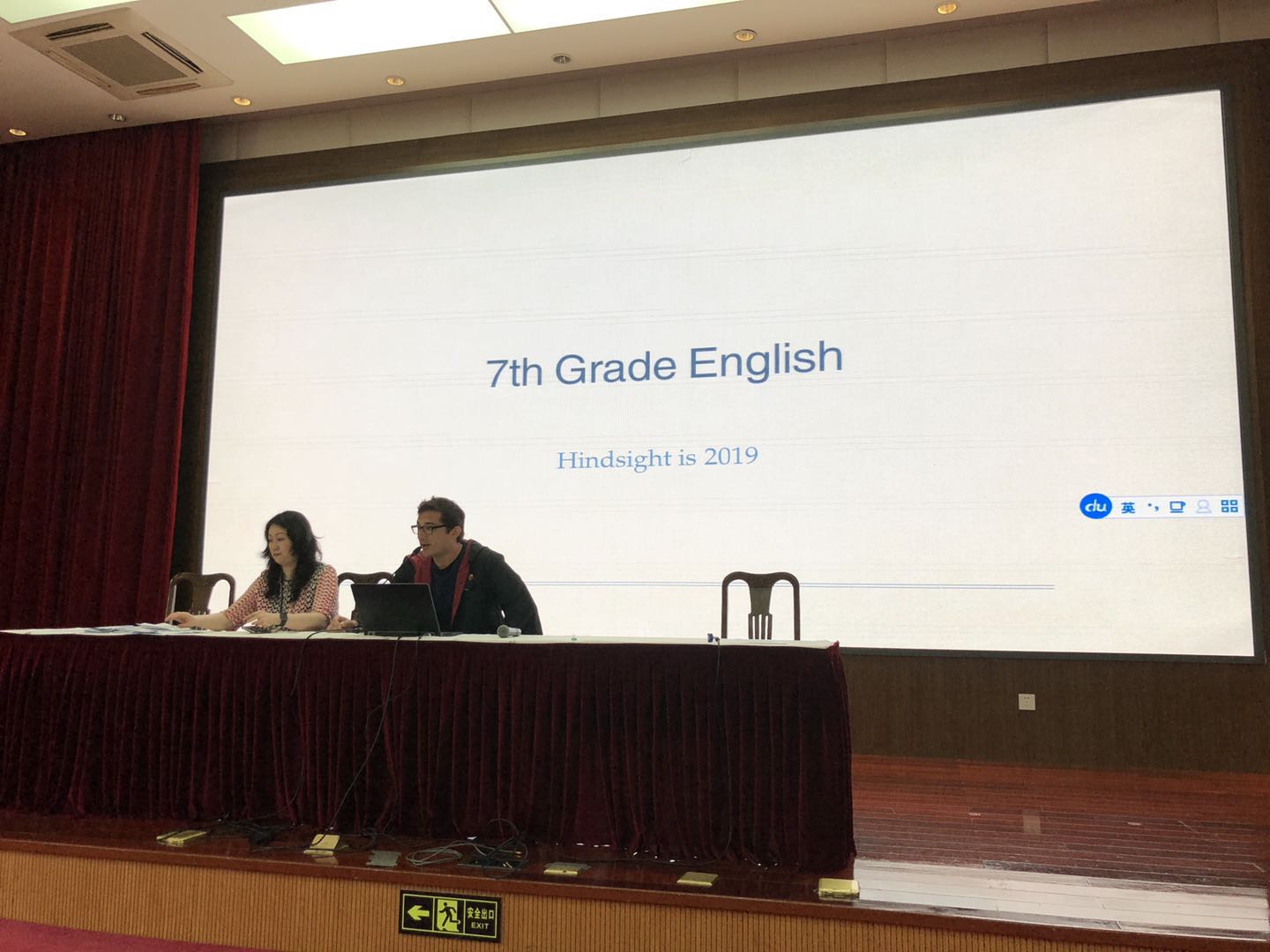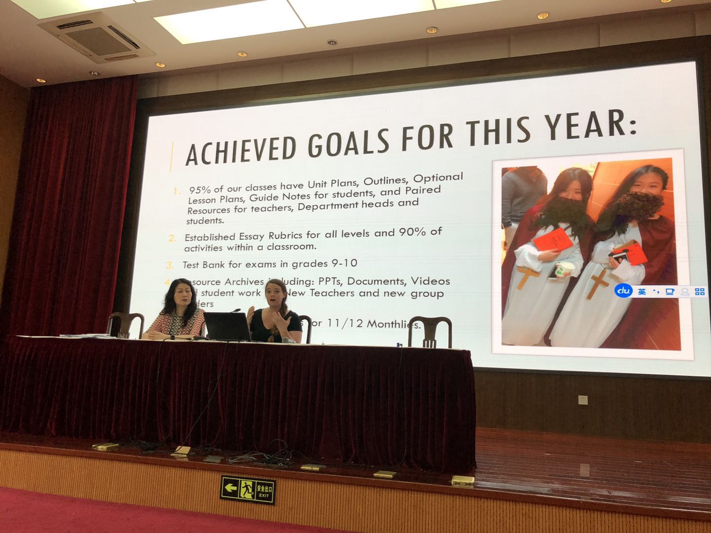 On the morning of June 27th, the Foreign Affairs Office organized all foreign teachers to review the second semester of 2018-2019 school year in the auditorium of Xian Mian Building. After Helen Hu thanked all the foreign teachers for their hard work this year, the leadership of each grade level shared deep appreciation for the teachers who went above-and-beyond to enhance the educational experience of their students, such as themed days in primary, club achievements of middle school, and college application preparation for high school.