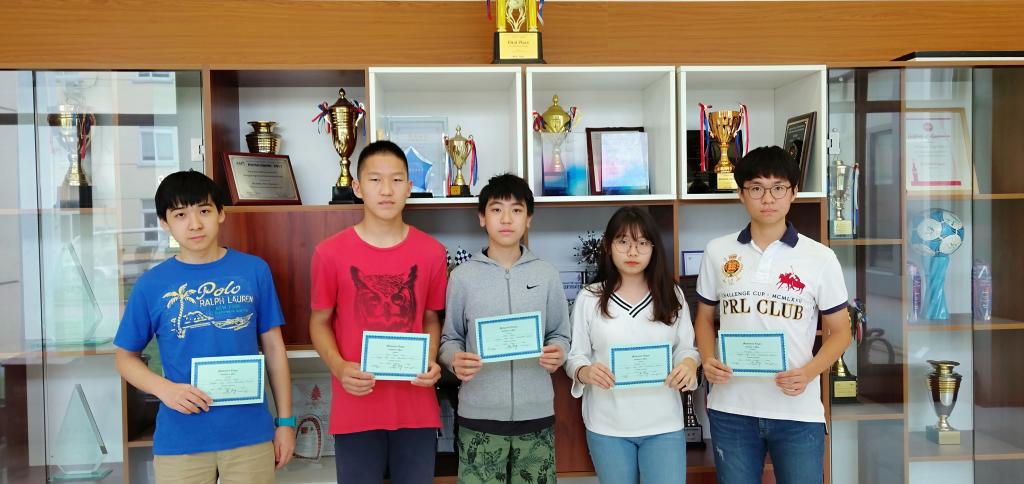 The Math League High School Contest Results (2018-2019) were announced. The contest started in October 2018 and lasted for 6 months. In the International Mathematics League, SHSID is ranked in 4th place with a cumulative score of 155 points. The following students were awarded Certificates of Merit on June 6th for their high cumulative scores in the high school contest: