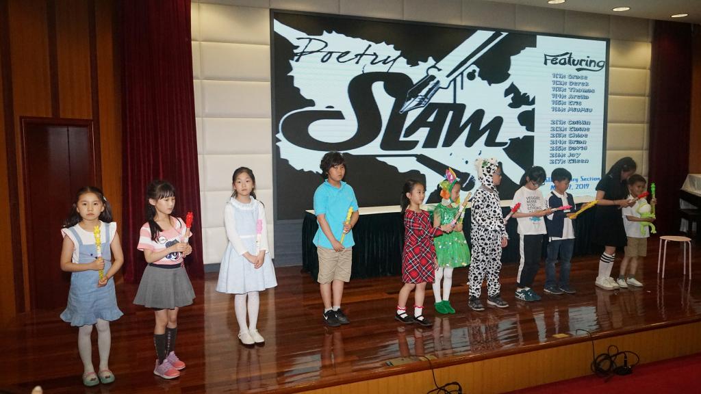 All grade one and two students watched the finalists perform their poems in front of judges, who would proclaim a poetry slam winner. The selected students performed once in front of their homeroom class and were then voted for to attend round 2: the final competition. Students were judged by Ms. Bao, Ms. Nicole, Ms. Abby, Erin from 4(1), and Edward from 3(1). These judges were looking for loud expressive voices along with fun animated movements that coincided with the poem. These students had practiced reciting the famous poems they selected for weeks, and their hard work was clearly shown during the competition.