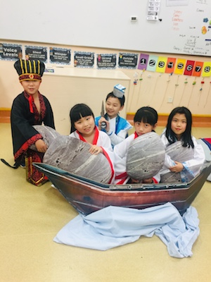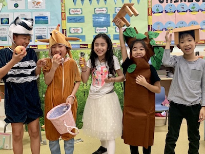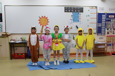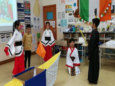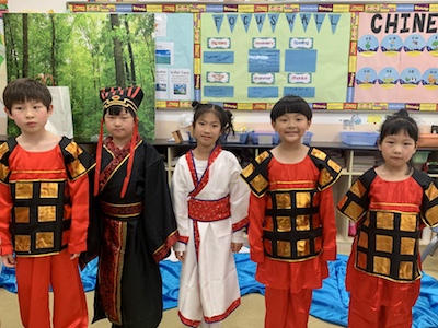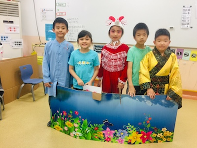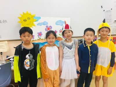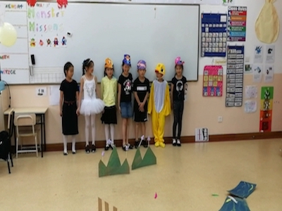 After weeks of practice, the students were familiar with every character and could recite the words fluently. On the afternoon of May 31, the second graders presented the Chinese plays in each class. The students got changed into their costumes and their parents prepared vivid backgrounds and stage props. The little actors and actresses used full body language and excellent facial expressions. The other students watched happily and were amused by the funny parts.
