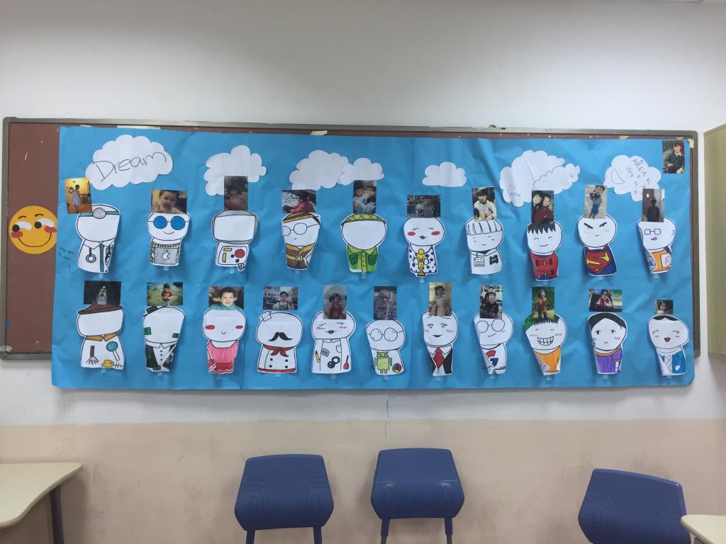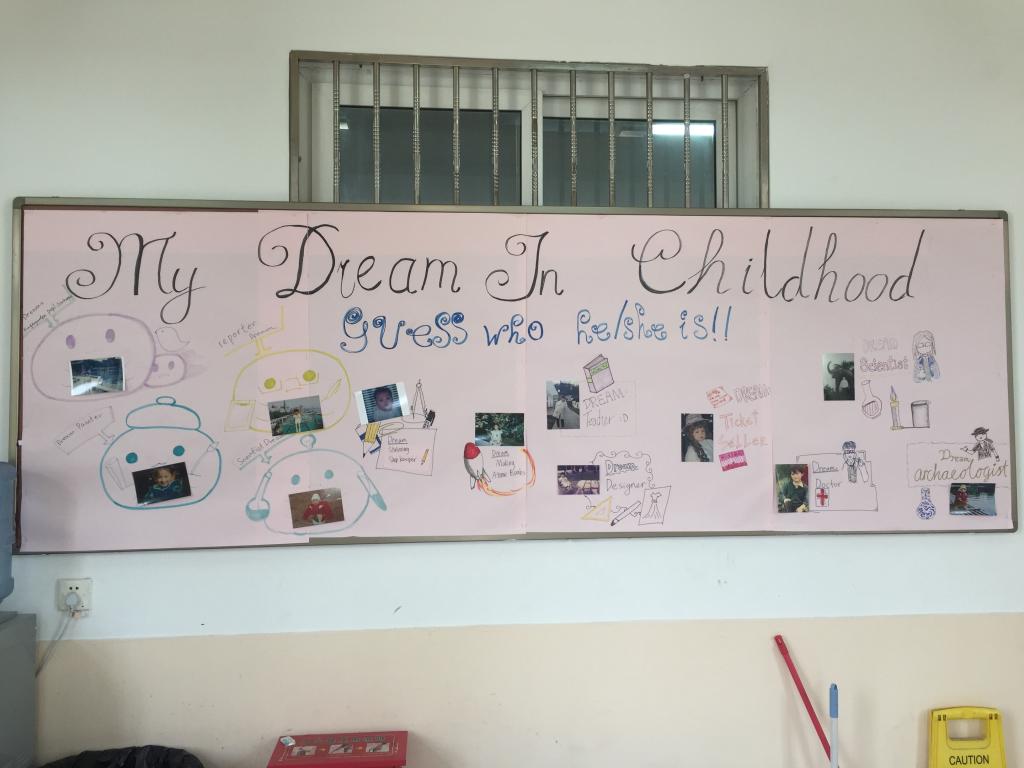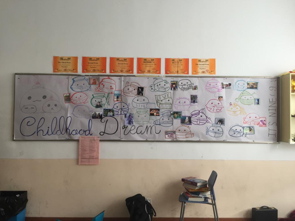 All of the grade 9 classroom poster designs were wonderful and extremely creative. One of the classrooms designed and drew characters corresponding to the various childhood dreams under the photos. The illustrations are fabulous.