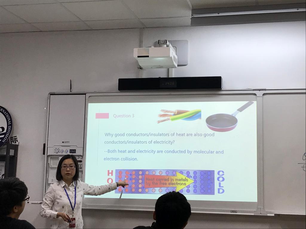 On the afternoon of May 30th, the open class instructed by Ms. Shengli, head teacher of high school physics department, attracted many observers. The hour-long AP physics class was managed in a flexible degree, logical, and approachable. Abstract physics was explained vividly by Ms. Shengli with the help of appropriate props. The interaction between the teacher and her students made the whole class efficient and well-organized, which greatly impressed all of the observers.
